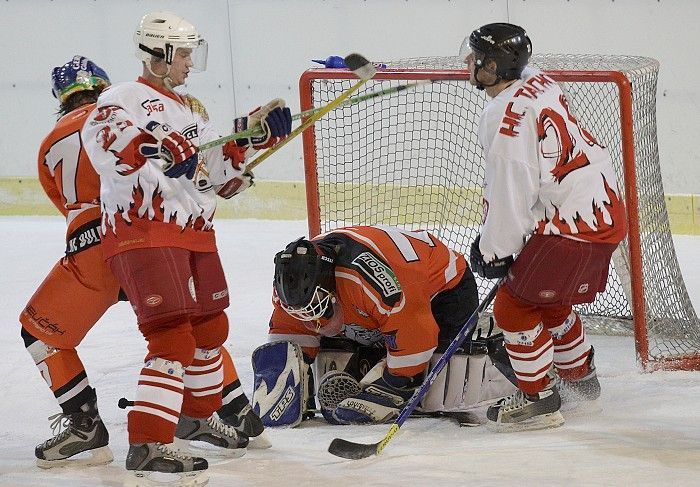 Ve středu 5.12.2007 si Buldoci přivezli z Tachova další cenné vítězství ... Zápas proběhl podle standartního scénáře. Do první třetiny vstoupili Buldoci s velkou vervou a bylo jich plný led. Dobře kombinovali a vytvořili si mnoho šancí. První branku dokázal proměnit Staněk. Bohužel o několik minut později Tachov vyrovnal. Ve druhé třetině byli Buldoci v útlumu. Několik tachovských tutovek vychytal, někdy se štěstím, brankář Kozelka a nedovolil hráčům HC Tachov ve druhé třetině skórovat. Naopak v závěru třetiny proměnil dvě střely v jedné minutě Šůcha. Do šaten odcházeli hráči za stavu 3:1. Ve třetí třetině snížili tachovští na 3:2. Buldoci se nenechali zatlačit do svého obranného pásma, ale zasadili opět během jedné minuty dvě bleskové rány za záda tachovského gólmana. Ke konci utkání snížil soupeř na konečných 5:3. Hráči HC Buldoci Stříbro sehráli pohledný hokej. K vidění byly pěkné kombinace. Pochvalu si zaslouží všichni hráči. Doufáme, že brzy budou naši fanoušci moci sledovat mistrovské utkání také na stříbrském zimním stadiónu. Třetiny: 1:1, 2:1, 2:1 Branky: 12., 50. Staněk, 35., 35. Šůcha, 50. Sládek Rozhodčí: Petřina ml. - Petřina st., Paťha PS: Omlouváme se, že jsme nepřinesli popis z nedělního utkání proti Přimdě. HC Buldoci Stříbro - Tatran Přimda 5:7 Foto: © 2007 Martin Šnaidauf Dne 20.12.2007:Václav Šůcha 06.12.2007 - 06:57:40 kasi - paráda kluci,jen tak dál !!! Pro reakci na článek musíte být přihlšen |