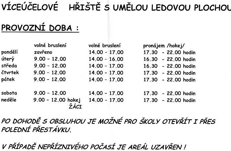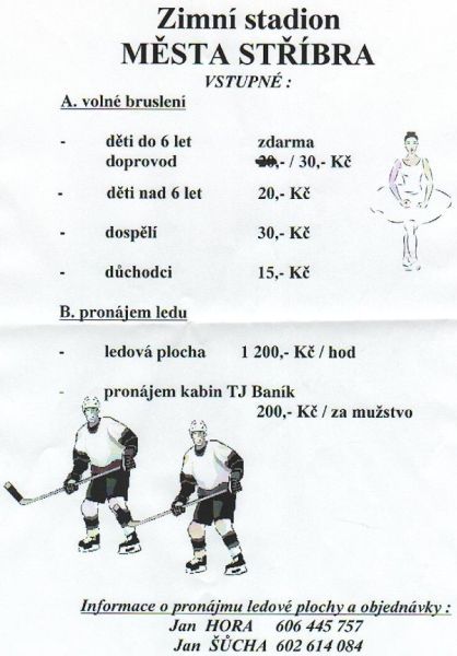 Zimní stadion je již plně k dizpozici všem... Pro všechny, kteří se mě stále ptají.... Zimní stadion je již plně funkční a je otevřen každý den s minimálním omezením. Provozní dobu a ceny se dozvíte rozkliknutím prvních dvou fotografiíí pod článkem.... Dne 10.12.2007:Martina Sihelská 11.12.2007 - 17:51:56 Miki - mělo by to být na celé dopoledne, nebo celé odpoledne. 11.12.2007 - 10:09:14 georges - To vstupné je na celý den? 10.12.2007 - 19:16:50 vsucha - To jsou letáčky. :-( Hrůza Pro reakci na článek musíte být přihlšen |