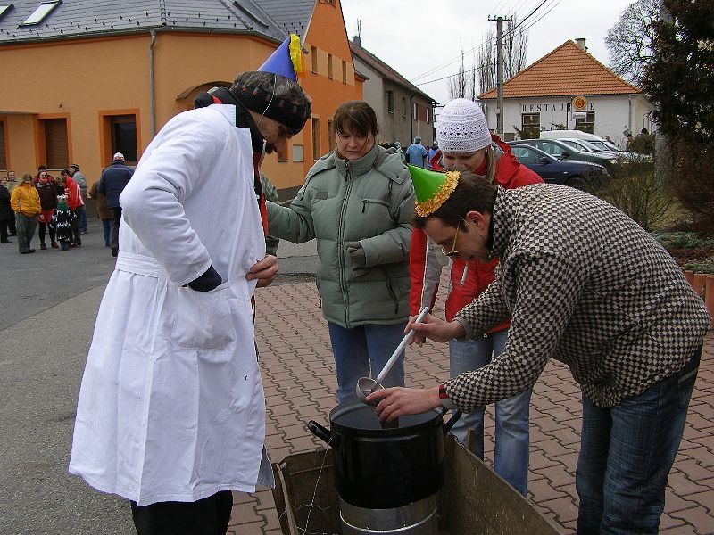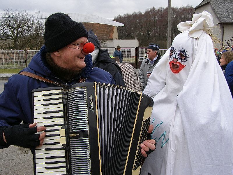 Ano, titulek je pravdivý, Sulislav má jednu z nejstarších tradic v regionu. „První písemná zmínka o masopustu je z roku 1785. Nevím sice, jak se chodilo pravidelně v 18. a 19. století, ale každopádně od první republiky je masopust evidován v kronikách každoročně,“ řekl nám sulislavský kronikář Rudolf Hruška. Na masopust se každý rok sjíždějí i lidé ze širokého okolí, nezřídka i z ciziny, zejména pak z Německa, neboť v Sulislavi dodnes žijí jejich potomci. Průměrný počet masek bývá kolem sedmi desítek. Tradici mají rádi i chalupáři, kteří kvůli masopustu jedou na víkend do Sulislavi i v zimě. „Jezdíme sem už šest let z Plzně, masopusty jsou tu pěkné. Vloni tu dokonce trpaslíci údajně našli zlato a chystali se nám podkopat chalupu,“ smáli se manželé Honsovi z Plzně. Tradici masopustního veselí letos kazilo počasí, studený vítr brzy všechny prokřehl a bylo proto opravdu nutné prohřívat se zevnitř. Naštěstí s průvodem jezdila i pojízdná prodejna teplého vína. Navíc se u každého domu nabízely různé pochoutky, které – nejen maškary!! – prokládaly něčím ostřejším…. Kdo nemohl alkohol, čehož zejména litovali řidiči, ten se mohl zahřát třeba při tanci za rytmu padesátileté skupiny DUVENBLEJT, která k výročí založení plánuje velký koncert o volbách. Komu nesedl rock, ten poskakoval v přední linii při zvuku harmoniky, vozembouchu a bubnu. S bubínkem přišel Václav Bódiš ze Sytna. „Hraji na něj asi tak 25 let a naučili mě to právě tady - v sulislavské hospodě u Emana. Od té doby hraji i na svatbách či narozeninách, ale hlavně při masopustech,“ vyprávěl Václav Bódiš. Masopustní průvod prošel celou vesnicí, děti dostaly mnoho dobrot, od tradičních koblih po sladkosti. „Já dneska dělám trpaslíka Šmudlu Sněhurce, ale je opravdu zima,“ říkala Maruška Gebertová. Bohužel zima nebyla jen trpaslíkům, ale i robotům, zdravotnickému personálu, princeznám i vodníkům, policii a dalším účastníkům…..Snad za rok se blýskne na lepší časy, pardon - počasí…. Dne 02.02.2008:Martina Sihelská Pro reakci na článek musíte být přihlšen |