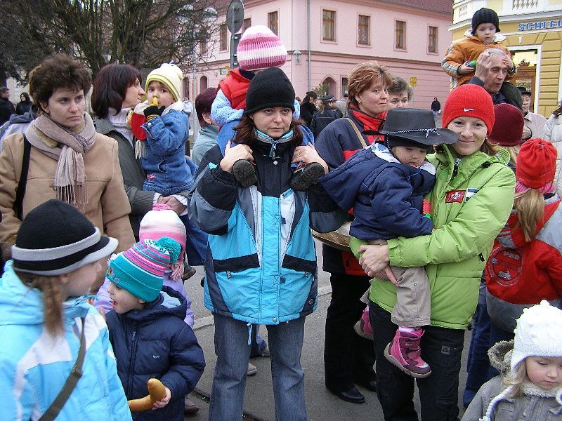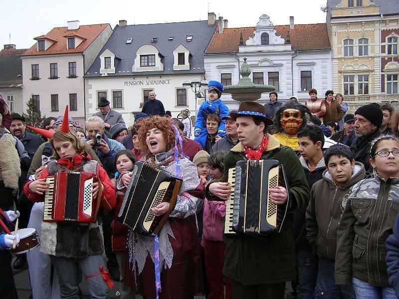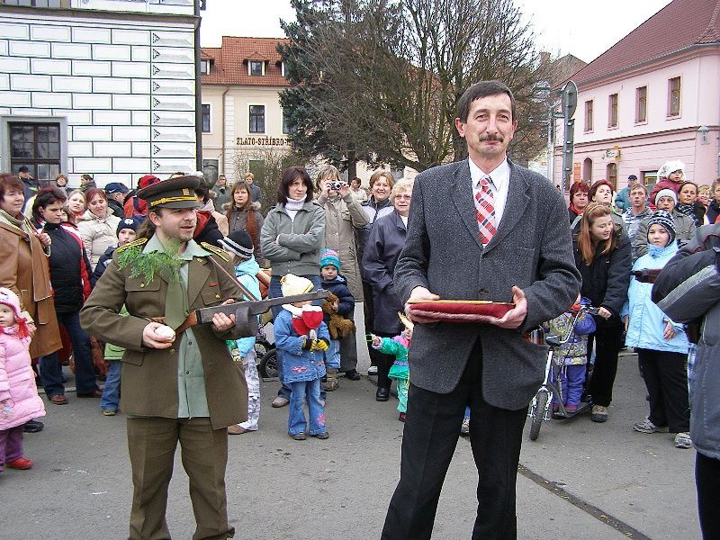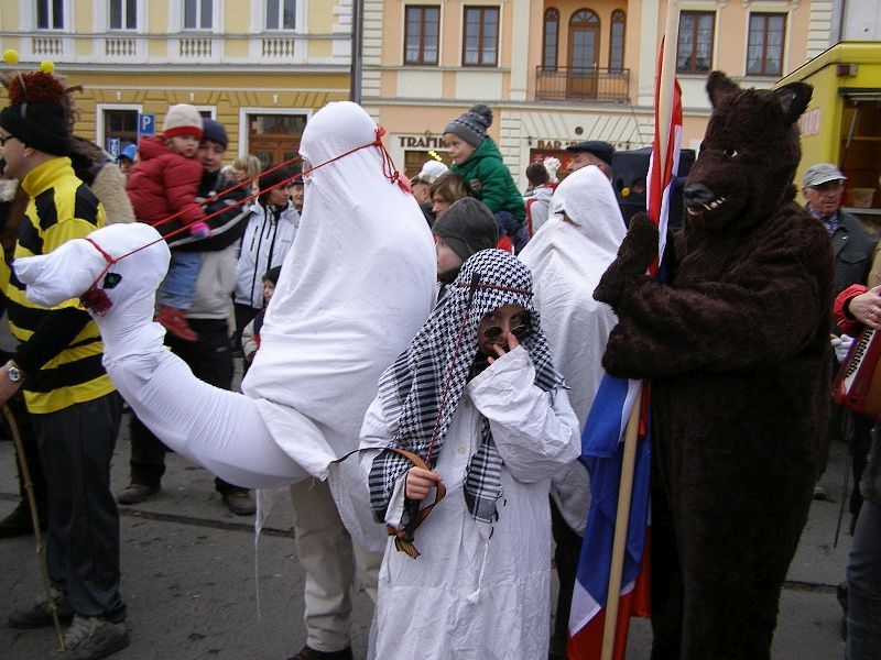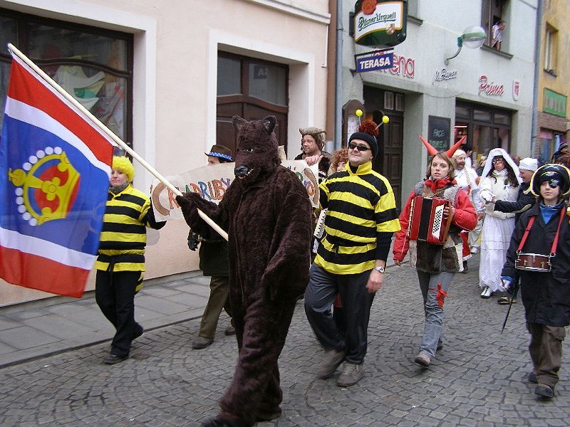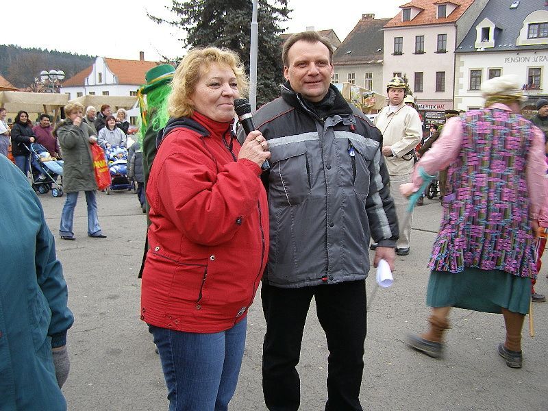 Průvod masek se prohnal Stříbrem a skončil na náměstí... Masky a diváci se sešly u stříbrného kina Slavia. Masopustního veselí se zúčastnili členové divadelního spolku Divoch, dále pak přijely maškary z Kladrub. I stříbrští se do akce zapojili a přišli v různém přestrojení. Za pochodového rytmu kapely Amátovky se všichni přesunuli na náměstí, kam byl eskortován starosta města Miroslav Nenutil. Ten byl drobným násilím (puška v zádech) přesvědčen, že musí vydat klíč od města maškarám, pokud by prý tak neučinil – Pronobus měl v záloze klíč jiný. Kladrubské maškary se chtěly chopit práva na město Stříbro, neboť prý mají důkaz, že dříve nepatřily Kladruby ke Stříbru, ale staré mapy jasně dokazují, že bylo Stříbro evidováno pod velkým městem Kladruby. Značně zaprášená mapa, kterou Pronobus všem „vokázal“, jeho slova měla potvrdit. Získaný klíč strhl bujaré veselí, aby mohl pan Nenutil dělat hopky - dostal odměnou kozí bobky. Paní starostová pak - dostala hladké mouky vak. Aby syn starostův získal dobré věno, k tomu mu mělo posloužit seno. Tanci s maškarami nikdo neunikl - ani zastupitelé z radnice. „Jsme rádi, že přišlo hodně lidí a masopustní tradice se ve Stříbře začíná obnovovat. Doufáme, že příští rok se přidají i další masopustní chasy z okolních vesnic,“ řekl nám místostarosta města Pavel Tóth. Masky získaly i památkové listy a vítězné byli oceněny. Mezi vítěze dětské masky patřila i Terezka Loukotová ze Stříbra. „Pro Terezku jsme si půjčili klobouk od babičky, který jsme ozdobili pentličkami,“ prozradila nám maminka roční holčičky Iveta Loukotová. „Nečekala jsem, že tu bude tolik lidí v maskách, příští rok se určitě více připravíme a pořádně si to užijeme,“ dodala mladá maminka. Z Kladrub byl i mladý bubeník Aleš Rubáš. „Já chodím do ZUŠ na bicí a na flétnu, a tak mě maškary berou s sebou. Ale náš masopust je stejně lepší, protože u nás je více jídla a dobrot,“ chválil své domácí dvanáctiletý bubeník. Stříbrští však byli maximálně spokojeni. „Tahle tradice se určitě dobře uchytí,“ myslí si Marie Šlechtová. „Musíme pochválit stříbrné „divochy“, kteří jsou opravdu šikovní a máme je všichni rádi. Kdyby mohli dělat více akcí, určitě by měli hodně návštěvníků,“ pochválily divadelníky Marie Šlechtová a Hedvika Berounová. Dne 06.02.2008:Martina Sihelská Pro reakci na článek musíte být přihlšen |