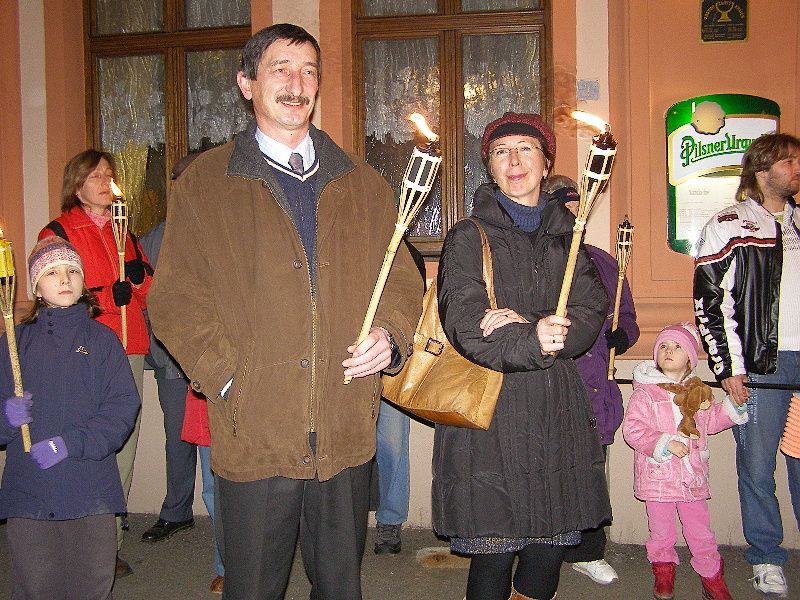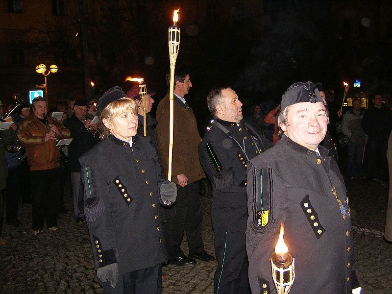 Již podruhé se mohli stříbrští občané přidat k hornickému pochodu s loučemi. Večerní sraz u Kalicha všechny přesvědčil, že v budoucnu půjde o velice pěknou tradici. Horníci spolu se starostou města Miroslavem Nenutilem všechny uvítali. „Chtěl bych moc poděkovat členům hornického spolku za to - jak jsou pilní a šíří věhlas našeho královského města,“ řekl starosta. Všem přítomným byl zároveň představen nový prapor, který je replikou praporu ze 16. století. V čele průvodu, který vyrazil z náměstí směrem k hornickému skanzenu u řeky, šli horníci spolu s ostrostřelci. Do kroku vyhrávala kapela Amátovka. Průvod uzavírali bubeníci skupiny Tambor spolu s dalšími účastníky. "Já mám mezi horníky strýčka, ten nás pozval. Rád chodím s lampiónem," pochlubil se malý Lukáš Rabada s bráškou Ondrou. „Horníci všem zapůjčili louče. U řeky bude ohňostroj a také něco dobrého k občerstvení,“ těšil se Dušan Rabada ze Stříbra. S loučí šla i Milada Königsmarková. „Vzala jsem i svou vnučku Barunku. Pro mě je to hezká večerní procházka a myslím, že to časem bude pěkná a žádaná tradice,“ myslí si Königsmarková. Sdružení Tambor přijelo z Plzeňska. „Když nás pan Karel Neuberger oslovil, vůbec jsme neváhali. Rádi jezdíme na takové akce a historické slavnosti,“ říká Dagmar Šnoblová. Dlouhý průvod s lampióny a loučemi se městem vinul jako světélkující had. Bubny ještě podtrhly jedinečnou atmosféru. V hornickém skanzenu na všechny čekal ohňostroj, který se líbil zejména dětem a také občerstvení z Gastra Zlatý kalich. Skanzen byl osvětlen loučemi, a tak účastníci využili i možnost večerní prohlídky. Dne 09.02.2008:Martina Sihelská Pro reakci na článek musíte být přihlšen |