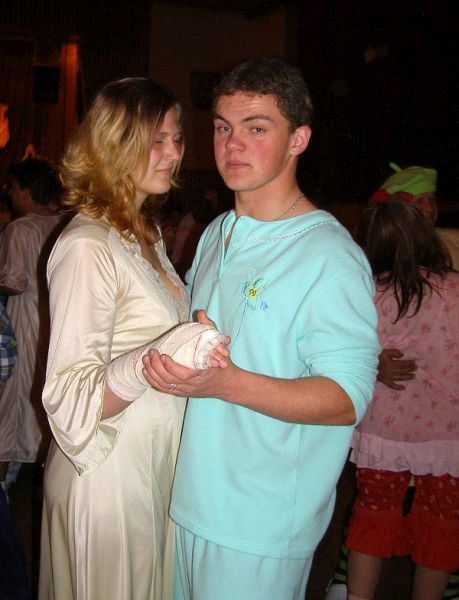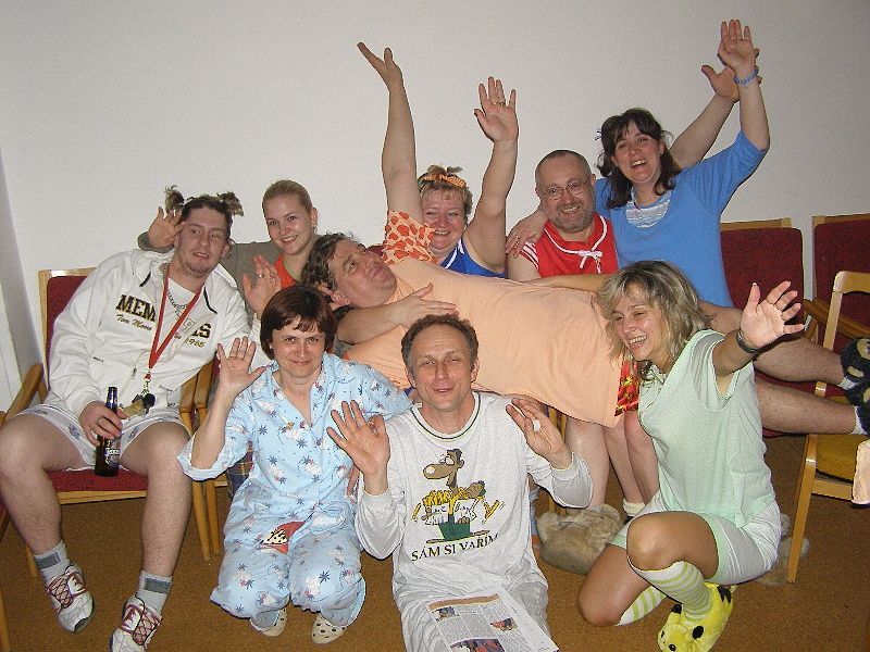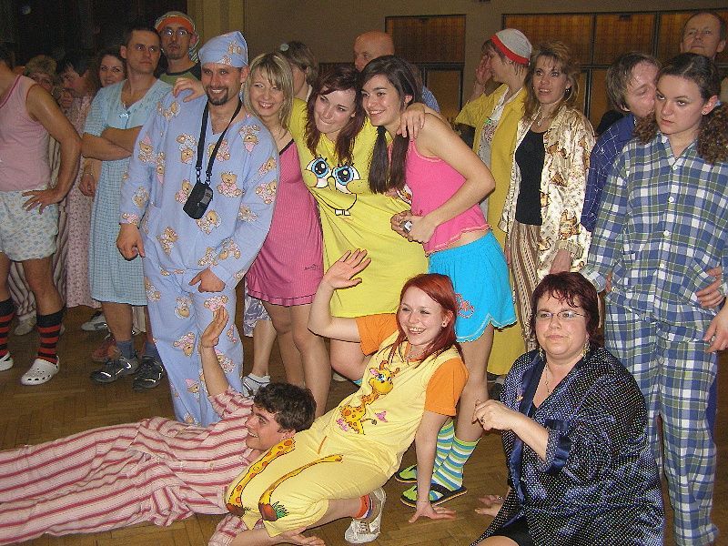 Aktualizováno! Již po 14. pořádal divadelní soubor „Divoch“ ... svůj pyžamový bál. Svému jménu opět ostudu neudělali, všichni řádili jako diví. První čtyři roky se „pyžamák“ konal v PDA ve Stříbře, až teprve v roce 1998 došlo k přemístění do stříbrského KD. Ten také pojme mnohem větší množství tancechtivých. Na pódiu vyhrávala bezdružická kapela Ametyst a na parket nikdo nikoho dlouho pobízet nemusel. „Páni, skvělá akce. Na pyžamáku jsem poprvé a nemá to chybu. Moc se mi líbí muži, kteří tu pobíhají v dámském negližé,“ smála se šestnáctiletá Jana Lacková s kamarádkou Petrou Plzákovou. Pyžamák měl opět i mezinárodní účast, po sále v pyžamu pobíhalo i několik Angličanů, kterým se „ryze česká zábava“ moc líbila. Některé účastníky bál překvapil, jako třeba Ondřeje Kinkala ze Svinné. „Dnes jsem tu také prvně a jsem docela i lehce šokovaný, co všechno si lidé na sebe nevezmou. Každopádně dámám sluší vše a pánové jsou v nočních úborech spíše vtipní,“ zhodnotil situaci pan Kinkal. Občas se někdo pokoušel pořadatelům proklouznout v civilu, ale vždy byl zadržen. „Bylo tu pár lidiček, co se domáhali vstupu v džínsech, ale po domluvě buď odešli jinam, nebo se pak vrátili v pyžamech,“ potvrdil nám Rudolf Tarábek, který „strážil“ vchod. Na bále byla i parta ze Zbůchu. „Jsme tu letos posedmé, tahle stříbrská akce nám za to stojí, abychom přijeli,“ řekl Pavel Bláha. „A to se těšte, ještě jdeme k vám na fotbal a to dostanete nářez, určitě vyhrajeme,“ vyhrožovali fanouškové ze Zbůchu. Nářez se nekonal, Zbůch byl nakonec rád za remízu. Jak jsme se zmínili v prvním odstavci, „Divoši“ svému jménu ostudu neudělali, o tu se však postarali jiní. „Moc nás mrzí, že mezi jednotlivými vystoupeními nás někdo okradl o rekvizity a paruky. Víceméně, nejde o to, že musíme pořídit jiné, ale tyto „peníze navíc“, které budeme muset vydat, byly původně určené pro pomoc nemocným dětem na DK v Plzni, kam každoročně přispíváme sponzorskými dary,“ mrzí krádež všechny členy souboru. Prý si další rok rozmyslí, zda mají divákům připravit půlnoční překvapení, pokud by měli neustále střežit rekvizity. Český národ si tedy opět díky jednotlivcům připsal další mínus. Celkově však bál sklidil kýžený úspěch. „Na pyžamák se prakticky připravuje již po Novém roce. To se nejdříve sejdeme v nejmenované hospůdce, dáme hlavy dohromady a cca po pěti pivech nás políbí múza a už víme, jak se připravit,“ vysvětlila nám původ vtipných scének Hana Hermanová. „Je to kolektivní práce, kterou děláme ve svém volném čase, a proto nás pak mrzí, když se někdo takhle odvděčí,“ dodali divadelníci. Dne 06.04.2008:Martina Sihelská 09.04.2008 - 12:19:44 ila - Že je to nejlepší ples sezóny, s tím souhlasím,ale co se týká vystoupení, záleží na úhlu pohledu, jak člověk tyto scénky chápe. Mně se to líbilo moc, mělo to vtip. Jen je smutné, že si někdo dovolí sáhnout na věci, které mu nepatří. 09.04.2008 - 09:52:54 luminex - Pyžamák byl skvělej, je to rozhodně nejlepší ples celé sezony!! Nechápu co z toho kdo má, že ukradne rekvizity divochům, fakt děs, ale možná to byla nějaká skrytá reakce na to, že upřímně vystoupení bylo docela trapný, letos nic moc scénky. Tak příští rok přeji více zdaru. Pro reakci na článek musíte být přihlšen |
