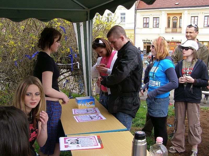 Stříbrské náměstí ovládlo majálesové veselí, které připravili studenti z G5. Ti vyšli odpoledne ze školy a vytvořili pestrobarevný průvod. „Je to už tradice a my jsme ji rozhodně nemohli obejít,“ říká Konstantin Novikov z G5. „Zapojila se celá třída, každý měl něco na starost, já asistuji u scének a také jako majálesová policie,“ dodal Novikov. S majálesovou policií nebyly žádné žerty, koho přistihly při přestupku, okamžitě platil pokutu, za kterou však získal lístek do tomboly. Nekompromisní byli i policisté Šimša a Mirda. „Byla jste přistižena při činu, okamžitě Vám ukládáme pokutu,“ neusmlouvala jsem je ani jako redaktorka. „Prosím, napište, že nejvíce si ceníme práce našeho nejhlavnějšího organizátora Karla Krumlovského,“ vzkazují Šimša Svoboda a Mirda Staněk. Na náměstí se kromě řady soutěží konala i korunovace nového krále majálesu. Bohužel počasí studentům moc nepřálo, slunečné odpoledne se během pár minut změnilo v déšť s krupkami. „Je to škoda, že se tak rychle zkazilo počasí, děti to měly moc pěkné a byla vidět jejich výborná spolupráce,“ pochválila studenty procházející Martina Kohoutová. Dne 25.04.2008:Martina Sihelská Pro reakci na článek musíte být přihlšen |