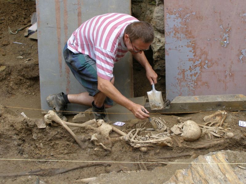 Původně mělo jít o odvodnění ve stříbrském letním kině, které se nachází ve zdech původního kostela sv. Máří Magdaleny. Při kopání dělníci našli kosterní pozůstatky a díky tomu se zastavily opravy a následoval archeologický průzkum. Ten přinesl překvapení, na místě jsou pravděpodobně kněžské hroby a také hroby měšťanstva. Zajímavé je, že většina pohřbených dosáhla věku kolem 20 let. Objev se datuje mezi 16. a 18. století. „Na místě byly také nalezeny bronzové křížky, zbytky rakví a kousky textilu,“ uvedl Martin Čechura – vedoucí výzkumu pod ZPČ Muzeem v Plzni. „Šperky zakonzervujeme a časem bychom je předali do stálé expozice stříbrského muzea, co se týče ostatků, ty budou podrobeny dalšímu průzkumu, který by mohl určit i pohlaví a věk,“ dodal Martina Čechura. Zatím se předběžně zdá, že většina pohřbených byla nízkého věku. Objev by měl také objasnit rituály pohřbívání ve středověku. Místní občané jsou překvapeni. „Už jsem se to dozvěděl mezi lidmi a nálezy mě docela překvapují, je to opravdu zajímavé. Doufám, že šperky a jiné podobné nálezy budou časem k vidění ve zdejším muzeu,“ řekl nám Karel Lukeš. „Celkově si myslím, že možná letos letní kino nebude funkční, já bych ho i z důvodu nižší návštěvnosti směroval jinam než do památkového objektu,“ dodal pan Lukeš. Dne 11.06.2008:Martina Sihelská Pro reakci na článek musíte být přihlšen |
