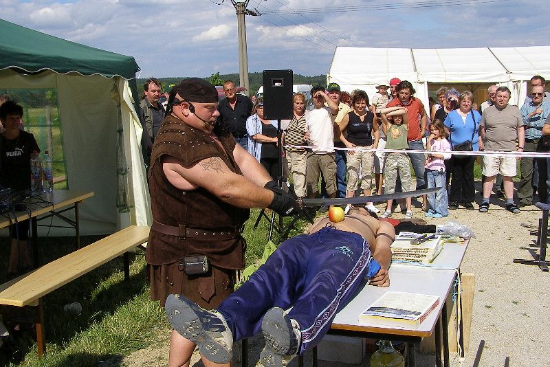 Na Svatoaloiské pouti v Sytně rozhodně nuda nebyla. Kromě tradičních pouťových atrakcí se zde představilo divadlo s pohádkou, kapely Stavovanka, Starší páni, Amati Band a velkým tahákem byl Láďa Hanzel, držitel mnoha zápisů do Guinessovy knihy rekordů. Mezi jeho světové rekordy patří třeba přitahování lokomotivy či naopak tlačení lokomotivy hlavou. Dokáže také pít pivo vleže s automobilem na břiše či se nechá přejet stokrát motocyklem v řadě, přičemž leží holými zády na fakírském lůžku. „ Tož vážím 150 kg a nějakou sílu mám,“ představil se divákům skromně silák z Moravy. „Dělám to už 15 let, je to můj koníček. Do Sytna jsem za vámi přijel na pozvání starosty,“ usmíval se sympatický svalovec. Některé jeho kousky braly dech a byly nebezpečné, ale vše dobře dopadlo. Do svého vystoupení zapojil i diváky. „Teda, ten silák to umí, to bych nikdy nedokázala,“ obdivovala nevšední kousky i desetiletá Petra Veselá ze Sytna. „Pouť je fajn, nejvíce jsem se vyřádila na autodromu,“ dodala slečna. Ze Stříbra přijela i Petra Sidková. „Byli jsme minulý týden i ve Stříbře na slavnostech, kde to sice bylo velkolepější, ale tady v Sytně je to také prima. Naše Terezka se tu svezla na koníčku,“ řekla nám sympatická maminka. Dne 22.06.2008:Martina Sihelská Pro reakci na článek musíte být přihlšen |