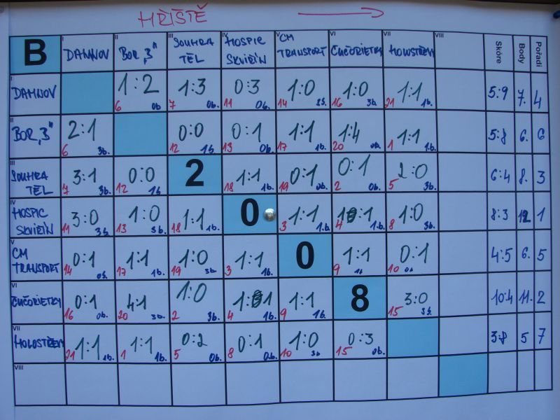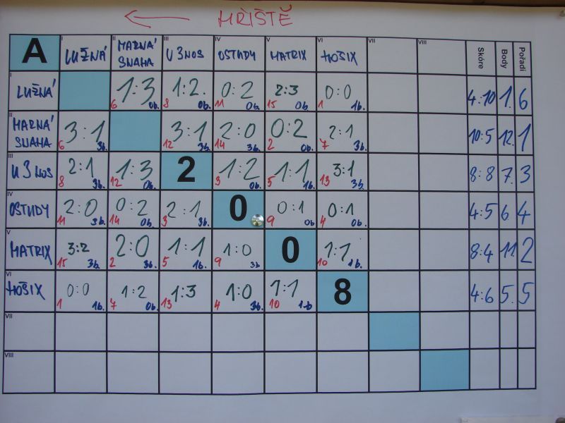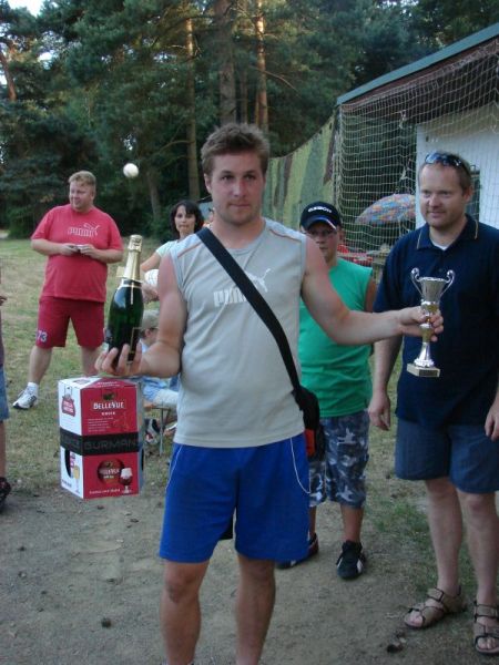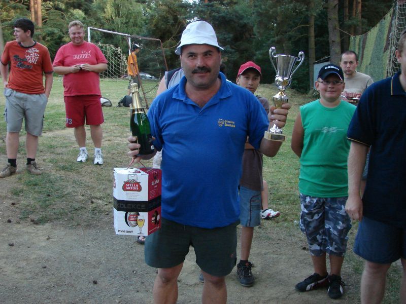 se uskutečnil v sobotu 5.července 2008 ... v Holostřevech. Během uplynulých let se turnaj stal vyhlášeným a letos byli na trávníku k vidění i hráči hrající divizi či krajský přebor nebo i vyšší mládežnické soutěže. To samo o sobě předurčovalo, že fanoušci budou mít na co koukat. Že fotbal už není jen výsadou mužů, dokázala i Lucka (viz. fotografie) z týmu U3NOS, která nejen dobře hrála, ale zapsala se i do tabulky střelců. Turnaje se zúčastnily i 2 stříbrské týmy - "Matrix" a "Ostudy". Právě stříbrské "Ostudy", parta studentů chodících si pravidelně začutat, byl snad jediným týmem neregistrovaných hráčů a přesto se mu podařilo postoupit ze skupiny do čtvrtfinále, kde byl vyřazen pozdějším finalistou Hospicem Skviřín, přičemž v prvním poločase, který skončil 0:0, byli stříbrští Skviřínu více než rovnocenným soupeřem. I pro druhý stříbrský tým "Matrix" bylo čtvrtfinále konečnou. Celkem 13 týmů se utkalo ve dvou skupinách systémem každý s každým, přičemž první 4 týmy z každé skupiny postupovaly do play off. Kompletní výsledkový servis najdete mezi fotografiemi níže. Dne 06.07.2008:Ing. Josef Hrábek Pro reakci na článek musíte být přihlšen |