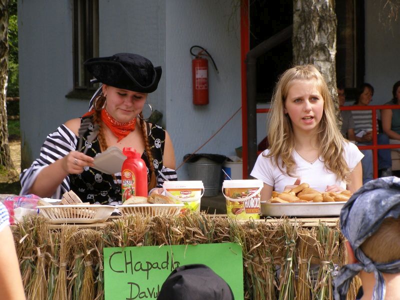 Tradiční tábor, kde se naše děti nenudí... Letní tábor v Boněticích, který každoročně pořádá Lenka Strankmüllerová ze Stříbra, se letos nese v duchu pirátství. Hlavní logo zní „Ostrov pokladů, aneb Bonětickou louží, Černý koráb krouží…“. Na tento tábor jezdí každoročně celkem 300 dětí, rozdělených do dvou běhů. Jednou z programových vedoucích je Barbora Otrubová z Písku. „Začínala jsem sem jezdit už před dvanácti lety jako malá tábornice. S věkem jsem pak postupovala na praktikantku a oddílovou vedoucí. Letos spolu s Václavem Heisem vymýšlíme pro děti hry a soutěže,“ říká dvacetiletá Barbora. „Některé děti se hned tak pro les a přírodu nenadchnou, ale pak je to „chytí“ a stojí to za to. Mezi nejoblíbenější hry patří akční - jako třeba „pašování proviantu či pevnost Boayard,“ dodala Barbora Otrubová. Do bohatého programu v návštěvní den pro rodiče patřil pojízdný hostinec, zdravotní masáže, polní kuchyně, koulení pivních sudů, přetahování lanem, lov Krakena apod. Děti se do tábora rády vracejí. „Já tu byla i v loni a moc se mi tu líbilo, a tak jsem přijela opět. Máme tu opravdu moc hodné vedoucí, hodně soutěžíme a sbíráme lesní plody. Ani nevstáváme moc brzy, budíček je v osm hodin a pak máme rozcvičku,“ vyprávěla nám osmiletá Kamila Haňáková z Plzně. Za Janem Pavlíčkem přijela celá rodina ve stylovém pirátském oděvu. „Náš Honzík je tu po třetí a my za ním rádi jezdíme. Každý rok si vyrobíme patřičné kostýmy,“ pochlubili se manželé Pavlíčkovi z Úherců. Bujaré veselí spustila také skupina afrických studentů, jejichž bubny přiměli všechny k tanci. Tábor zatím zdárně pokračuje dále, spokojená je i zdravotní služba. „Děti zatím nic vážného nepostihlo, spíše mají různé odřeniny, nějaké klíště bylo, jinak jsou všechna děti v naprostém pořádku,“ vzkazuje rodičům zdravotnice Eva Kardašová. Děti se vrátí, až konečně najdou zlatý poklad….Možná to do soboty zvládnou…… Zájemci mohou požádat o fota ve Fotoexpresu u Trávníčkové pod poliklinikou. Dne 21.07.2008:Martina Sihelská Pro reakci na článek musíte být přihlšen |