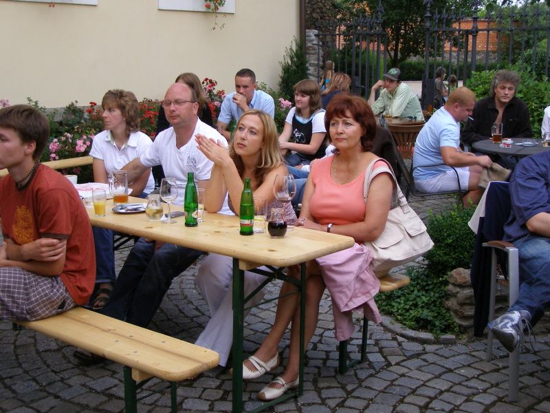 Malou oslavu keltského svátku Lughnasad si mohli vychutnat stříbrští občané. Formace Corchen rozhodně nezklamala a potěšila své posluchače svižným rytmem irské hudby. Akce se konala v zahradě vinárny U Rybiček a vlahý večer po horkém dnu přilákal pět desítek posluchačů. Ti však jen neseděli, za pomoci Stanislavy Šmahelové se učili také irské tance, a tak se nádvoří vinárny zakrátko změnilo na taneční parket. Proč se irská hudba dostala do vinárny, na to nám odpověděla organizátorka Věra Janečková. „ Náš podnik nabízí ve vinárně několik stovek kvalitních vín a k vínu vždy patřila hudba a tanec. Navíc irské písně jsou momentálně v kurzu a lidé je rádi poslouchají,“ vysvětlila nám Věra Janečková. Mezi hosty se zcela náhodně ocitl Tomáš Červenka se svou maminkou. „Původně jsme šli na pivo a nakonec jsme zůstali na muziku. Nejsme zdejší, a tak jsme o této akci nevěděli, ale moc se nám to líbí, hrají dobře,“ řekl nám pan Červenka z hlavního města. Milovníci staré hudby mohli být spokojeni a kdo chtěl, mohl si domů odnést krásný šperk od Dušana Königa. Dne 26.07.2008:Martina Sihelská Pro reakci na článek musíte být přihlšen |