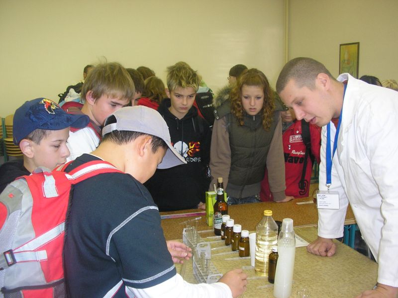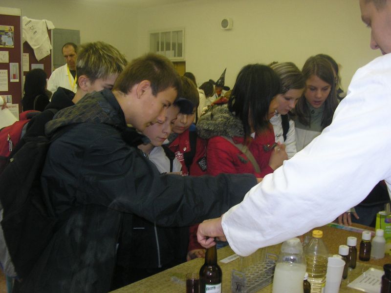 19.září 2008 se sekunda místního gymnázia vypravila do krajského města za poznáním v rámci Dnů vědy a techniky 2008. Po příjezdu se studenti zúčastnili půlhodinové chemické show - pokusy s názvy "Bručící medvídci", "Létající plechovka", "Faraonův had" či "Hořící bankovka" zaujaly opravdu všechny. V době této show začala soutěž čtyřčlenných družstev s názvem "Kas aš esu?" Družstvo mladších studentů ve složení Dominika Pihová, Eva Hodanová, Bára Pitrová a Aneta Kaslová (vše kvarta) vybojovalo úspěšné 4. místo z třinácti škol. Nezklamali ani studenti ze septimy, kteří vybojovali 9. místo ve složení Gregor, Dejmková, Bílá, Mirvald. Po ukončení chemické show se studenti přemístili na plzeňské náměstí. Zde si prohlédli další část expozic. Exkurze byla zajímavá a studentům se líbila. Příští rok se do Plzně podíváme opět - se studenty letošní G1. Dne 21.09.2008:Mgr. Zuzana Kalčíková Pro reakci na článek musíte být přihlšen |