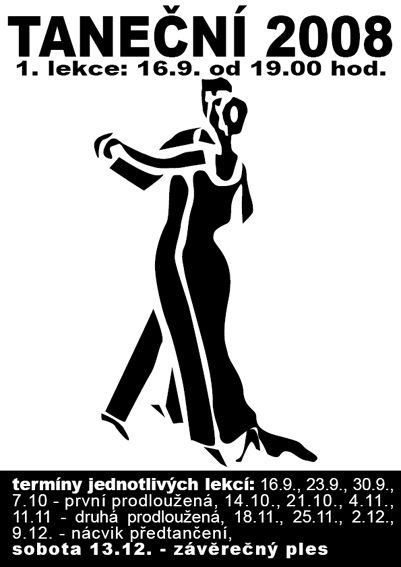ZÁVĚREČNÁ TANEČNÍHO KURZU 2008 Již můžete využít předprodej vstupenek na Závěrečný ples tanečního kurzu 2008. cena vstupenek: 100,- Kč informace na tel: 374 622 454 Dne 22.10.2008:Pavla Deredimosová Pro reakci na článek musíte být přihlšen |