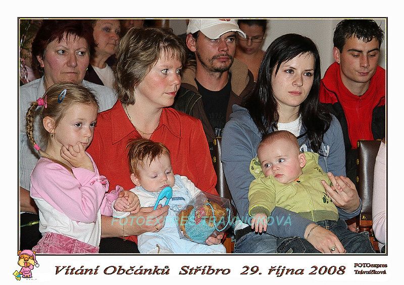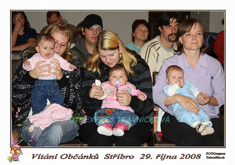 Celkem 14 batolat se sešlo na stříbrské radnici. „Letos jde již o čtvrté vítání a jak se zdá, ještě jedno stihneme. Je hodně miminek a převládají chlapci,“ prozradila nám Marie Ďurová ze Spozu Stříbro. Nejmladší občánky uvítal do obce Josef Sazama, krátkým pásmem básniček a písniček přispěly i děti z MŠ z Pastýřské ulice. „Na vítání jsem zde poprvé se svým vnoučkem Petrem Krátkým a moc se mi líbilo,“ byla spokojená Hana Hrochová. Každé z miminek si odneslo pamětní list a malý dáreček. Na radnice se sešli: Samuel Malý, Ema Volenová, Katrina Zavalaná, Blanka Kořínská, Patrik Drozda, Veronika Červená, Jakub Zdeněk Kejík, Petr Krátký, Rostislav Bleša, Bohumil Martínek, Tadeáš Vlasák, Jakub Harančík a také dvojčata Jakub a Ondřej Tolarovi. Fotografie dodala fa FOTOexpres Trávníčková pod poliklinikou, kde si můžete objednat různé fotografie z vítání. Děkuji pracovnicím z FOTOexpresu za spolupráci. Dne 01.11.2008:Martina Sihelská Pro reakci na článek musíte být přihlšen |