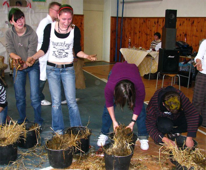 uspořádali studenti třetího ročníku oboru agropodnikání SOŠ Stříbro. Nove foto! ... Tradiční slavnost dožínek, kterou se symbolicky ukončují žně, uspořádali studenti třetího ročníku oboru agropodnikání Střední odborné školy ve Stříbře. V minulosti byly dožínky slavností, při níž se čeleď veselila na účet hospodáře. Příprava začínala již týden před dožínkami tím, že děvčata začínala plést ohromný věnec z klasů obilí všeho druhu. Do věnce se zaplétalo i ovoce, cukrovinky a koláče. S dožínkovým věncem pak chasa doprovázela poslední vůz (zvaný baba) směřující z pole do dvora. Program dožínek pořádaný SOŠ se uskutečnil v dopoledních hodinách v tělocvičně školy. Studenti 3.A předali symbolický dožínkový věnec řediteli školy Ing. Václavu Haladovi. Na slavnost byli přizváni i zástupci z řad žáků obou základních škol a děti z mateřské školy. Pozvaní měli možnost změřit své síly v soutěžích, které pro ně studenti SOŠ připravili. Dobrovolníci se mezi sebou utkali například v soutěžích v dojení krávy (pouze umělá vemena), v pití mléka na ex, či přebírání brambor mezi hnojem. Pořadatelé proložili vše vtipnými scénkami. Jelikož u dožínkové veselice nesměla chybět muzika, zazpívali studenti známou píseň Evy a Vaška „Bílá orchidej“. Závěr veselí patřil vyhlášení výsledků a poděkování učitelům školy. Vítěznou třídou se stala třída 1.B. Dne 06.11.2008:Pavla Deredimosová Pro reakci na článek musíte být přihlšen |