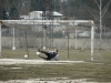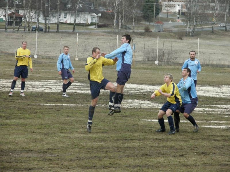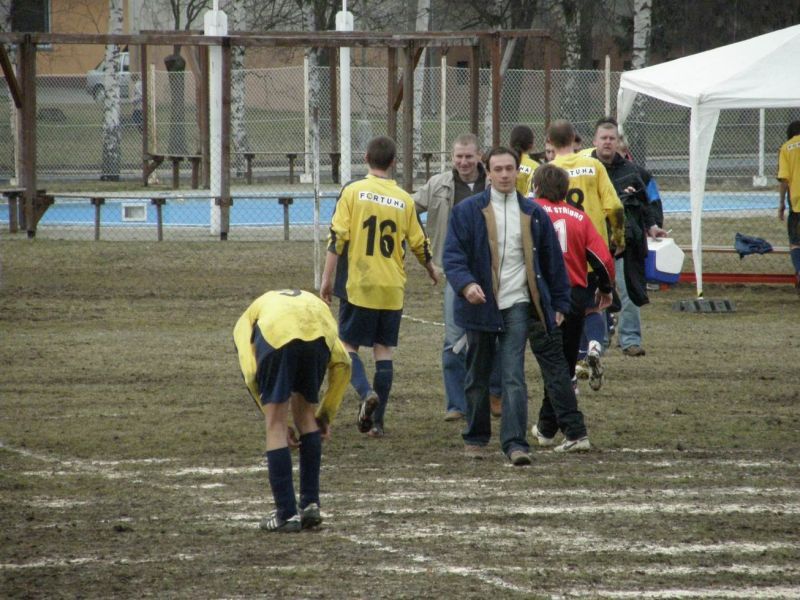 První jarní kolo fotbalové zahájili stříbrští fotbalisté na půdě Nepomuku S cílem bodovat i bez několika zraněných opor základní sestavy odjížděli fotbalisté Baníku do Nepomuka. První překvapení je čekalo hned po příjezdu, když se dověděli, že se bude hrát na malém náhradním hřišti, které svým povrchem připomínalo spíše oraniště posypané pilinami než regulérní povrch a obrubníky umístěné několik centimetrů kolem postranní čary hrozily zraněním v případě kontaktu. Druhé překvapení přinesla již první minuta zápasu, kdy se bez přípravy z hranice velkého vápna trefil nepomucký Noháček a domácí vedli 1:0. Na těžkém terénu bylo jasné, že kombinace nebude možná, a tak se hráči snažili hrozit především ze standardních situací a střelami z dálky. Pokusy Pelána, Valeny či Šamana však neprošly skrumáží domácích obránců. Zle pro Baník mohlo být v 25. minutě, kdy se řítil na Kosa Ticháček, ale nová posila Baníku Petr Demjan v poslední chvíli parádním skluzem zabránil domácímu útočníku v postupu na branku. Vyrovnání přinesla 29. minuta. Po rohovém kopu podržel v malém vápně míč Demjan a ve skrumáži těl se k míči dostal Kertis, který propálil vše, co mu stálo v cestě a srovnal na 1:1. O minutu později mohli jít domácí opět do vedení. Střelu z dálky vyrazil Kos jen před sebe a dobíhající a nikým nestísněný Ticháček trestuhodně zahodil, když trefil jen stříbrského gólmana. Do poločasu se skóre již nezměnilo. Druhý poločas přinesl opět úpornou bitvu a dlouhé nakopávané míče než pohledný fotbal. Slibnou příležitost promarnil stříbrský Šaman v 55. minutě, když v dobré pozici přehodil gólmana i branku domácích. Šanci obrátit skóre mohl po rychlé rozehrávce Pelána Demjan, který si naběhl na dlouhý centr, ale tísněn domácím obráncem poslal míč vedle branky. Když už se zdálo, že si mužstva rozdělí body, přišla 88. minuta. V pokutovém území Nepomuka byl stažen Pelán a rozhodčí nařídil pokutový kop, který sám postižený proměnil – 1:2. Domácí vrhli veškeré síly do útoku, ale Baníkovci si těsné vedení ve zbývajících minutách pohlídali a připsali si důležité 3 body. Sestava: Kos – Demjan, Flíček, Valena (55. Kertys), Petraška, Pelán, Šaman, Kertis, Trnka, Dyk M., Harvila ¨ O hodnocení zápasu jsme požádali trenéra Jaroslava Lorence: Kluci dnes prokázali obrovskou bojovnost a nasazení a to nám přineslo 3 body. Na tomto terénu a za takových podmínek nešlo hrát fotbal, ale opravdu jen bojovat. Jak jste viděl klíčový moment zápasu, kdy byl faulován Pelán?Myslím si, že to byla přísná penalta. Na druhou stranu ovšem v 1. poločase rozhodčí přehlédl hraní rukou v pokutovém území domácích a i faul na Dyka se mohl pískat. Dne 14.03.2009:Bc. Karel Lukeš 22.03.2009 - 17:00:41 PU12 - A co ta kontumace? To nemáme vedoucího družstva_ 15.03.2009 - 22:14:46 princezna - gratuluji pánové...a na zápas s Rozvadovem už se moc těšíííím... 15.03.2009 - 09:27:46 tubarao - Petr je opravdu výborný fotbalista a je dobře, že se našla možnost, aby nám na jaře pomohl. 15.03.2009 - 07:54:56 tichy - Kluci díky za velice zlatý a poměrně i důležitý 3 body z venku,myslím si že hodnocení pana Lorence naprosto vystihuje zápas.Chtěl bych ještě popřát Péťovi Demjanů ať se mu alespoň daří jako při jeho premiéře,protože byl jedním z nejlepších na hřišti a všem marodům ať se už uzdraví,protože jet na zápas bez 6 hráčů ze základu je dost!Ale zvládli sme to protže jsme BANÍK!Tak všichni 22.3. na Baník stadium proti Rozvadovu! Pro reakci na článek musíte být přihlšen |