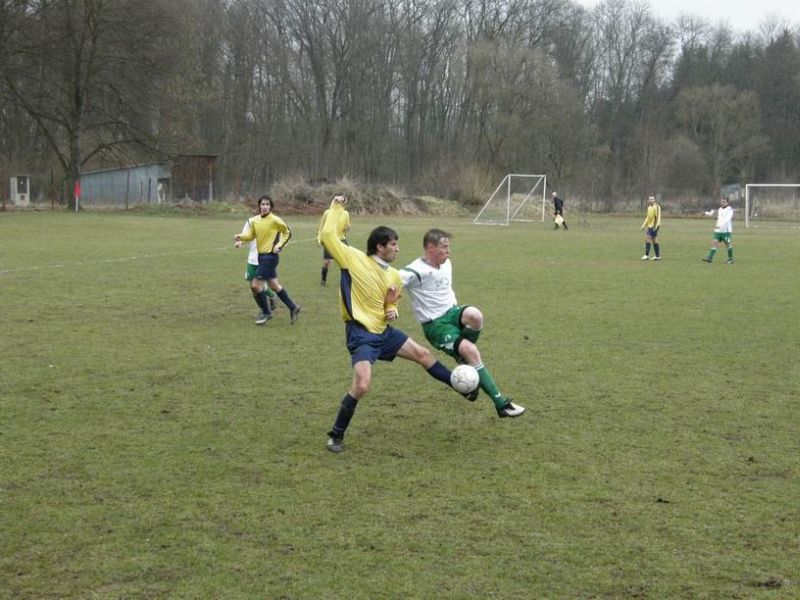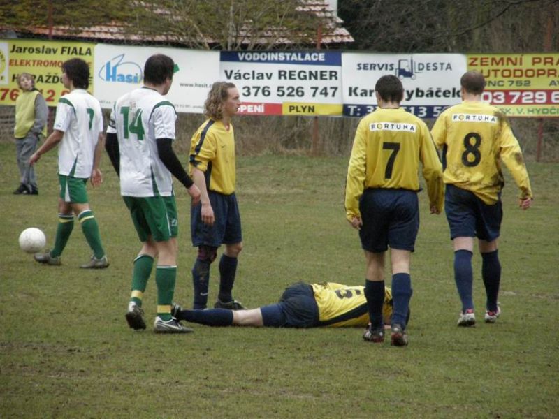 Veteráni Šaman s Kertisem otočili v posledních pěti minutách svými góly skóre a vystříleli Baníku 3 důležité body K dnešnímu zápasu odcestovali stříbrští borci pouze v jedenácti hráčích. Trenér Jaroslav Lorenc tak do sestavy opět povolal i dorostence Ichnatolyu a mohl již počítat s uzdraveným štírkem Bednářem. První šanci zápasu přinesla již 2. minuta, kdy z malého vápna pálil žichovický Beneš vysoko nad Kosovu branku. Na druhé straně byl na hranici pokutového území faulován Bednář. Přímý kop rozehráli Kertis s Pelánem, jehož střelu domácí gólman Němec jen vyrazil před dobíhajícího Bednáře, kterému se však nepodařilo prostřelit klubko obránců. Pěknou akci přinesla spolupráce Šamana s Pelánem v 21.minutě, gólovému zakončení však stála v cestě spojnice brankové konstrukce domácích. I nadále měli hráči Baníku převahu, ale šance Ichnatolyi a Pelána vyřešil pohotovými zákroky domácí Němec. Potrestání pro Baník přišlo ve 38.minutě. Žichovický Beneš našel přesnou přihrávkou na vápně Šišku, který se přesně trefil - 1:0.