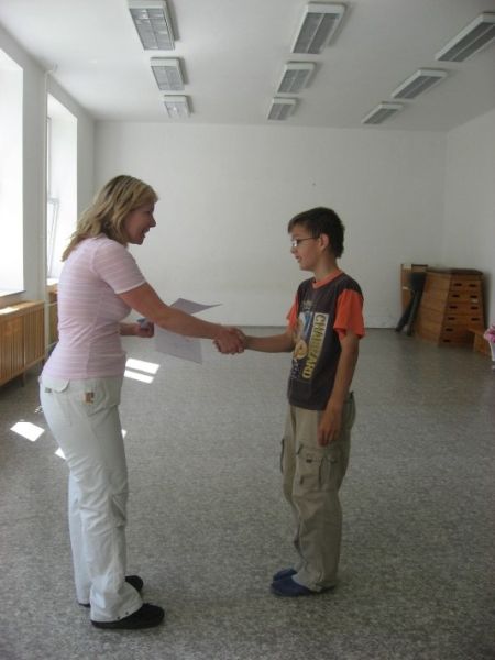 V naší škole je stále živo. V pondělí 27. dubna se uskutečnil již čtvrtý ročník pěvecké soutěže DO - RE - MI, pořádaný Jarmilou Dvořáčkovou, vychovatelkou ŠD v základní škole Revoluční ve Stříbře. Pro velký zájem se letos zúčastnili i žáci druhého stupně. Předsedou poroty se stal ředitel ZUŠ ve Stříbře pan František Kratochvíl, členy byly p. uč. Zdena Horvátová, Jarmila Dvořáčková a Vladimíra Hrazdilová. Celou soutěž moderovala paní Pavla Höslová, maminka žáka naší školy. Přes trému některých účastníků měla soutěž dobrou úroveň - tak znělo hodnocení předsedy poroty, který zavzpomínal i na minulá léta, kdy v naší škole byly pořádány pěvecké soutěže pro celý okres. Paní Horvátovou překvapila vysoká účast chlapců na prvním stupni. A nyní k tomu nejdůležitějšímu, výsledkům. 1. stupeň: 1. místo Irena Kuchárová 2. místo Zdeněk Hlaváč 3. místo Václav Ammerling. 2. stupeň: 1. místo Lucie Nistorová 2. místo Denisa Ondičová 3. místo Simona Kotlárová. Diplomy a ceny byly slavnostně předány v úterý 28.4.09 Všichni se již těší na příští ročník, a to nejen účinkující, ale i členové poroty.