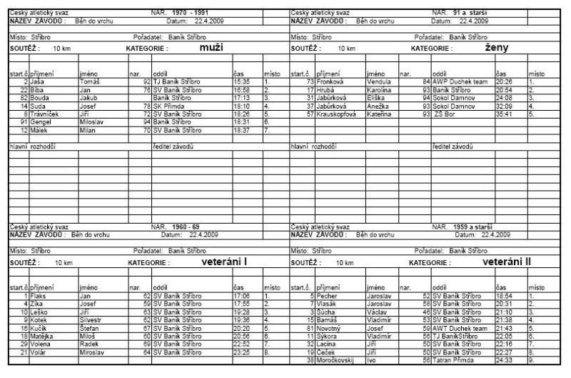 13.ročník běhu do vrchu pořádali atleti Baníku Stříbro. ... Tím vrchem byl Ronšperk nad Stříbrem a na cestu na něj a zpátky se ve středu 22. 4. 2009 vydalo 29 běžců a běžkyň. Trasa dlouhá 4 km (dva nahoru a dva dolů) je náročná zejména na odhad tempa. Volnější začátek se později těžko dohání a naopak „přepálený“ (příliš rychlý) může vést k ještě větším ztrátám. Zkušenější běžci již vědí, jak běžet, ti mladší to do sebe postupně dostávají. Již nebylo překvapením, že Tomáš Jaša, mistr republiky v přespolním běhu dorostu, se ujal vedení brzy po startu a bylo jen otázkou, ne kdo vyhraje, ale o kolik. Jaša, atlet bydlící v Kladrubech, ale výkonnostní růst absolvující v oddílu atletiky Baníku Stříbro, vyhrál rozdílem třídy náskokem 1:23 min. před dobře běžícím Janem Bíbou (SVS Baník Stříbro) a třetím Jakubem Boudou (Baník Stříbro), který si po delší době zazávodil. To bylo pořadí v hlavní kategorii. Celkově 3., ale vítězem veteránů nad 40 let se stal Jan Flaks. I jeho čas 17:06 min. je kvalitní. Na druhém místě doběhl Josef Zíka, který málem zmeškal start. 3. místo obsadil Jiří Leško. Všichni jsou ze SVS Baník Stříbro. V tomto závodě jsou vypsány pouze dvě kategorie veteránů, ta druhá je nad 50 let. Vyhrál ji Jaroslav Pecher s poměrně velkým náskokem před Jaroslavem Vlasákem. Ten se na 2. místo dostal po delší době. Velmi kvalitní výkon odvedl Václav Šůcha. Věkem nad 60 let se na stupně vítězů prosadil i v mladší kategorii a skončil 3. Nakonec kategorie žen, která by až na vítězku Vendulu Fronkovou z AWP Duchek team, byla vyloženě mládežnická. Fronková běžela dobře a zvítězila před Karolínou Hrubou z Baníku Stříbro. Se značným odstupem třetí doběhla Eliška Jabůrková ze Sokola Damnov. Jak se výsledku závodu promítly do Bodit cupu bude později informovat statistik této soutěže Vladimír Sýkora. Dne 24.04.2009:Ing. Vladislav Moravec Pro reakci na článek musíte být přihlšen |