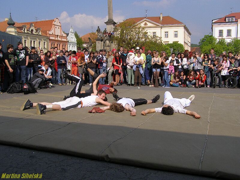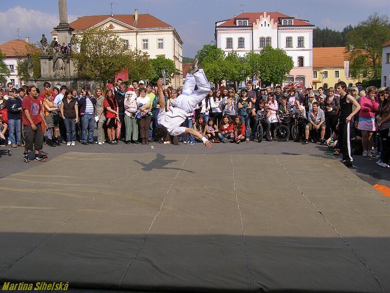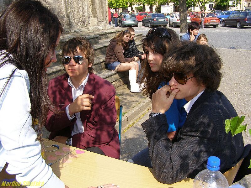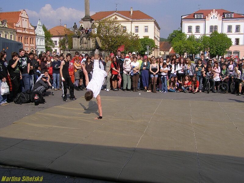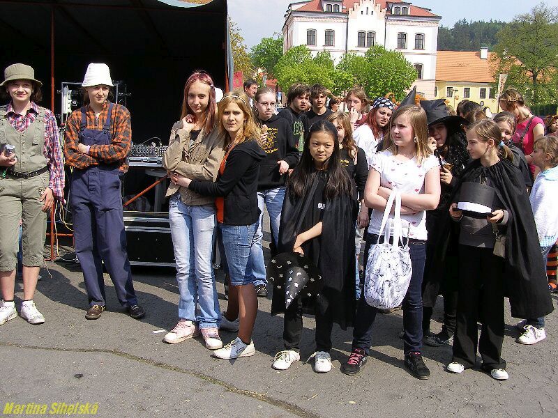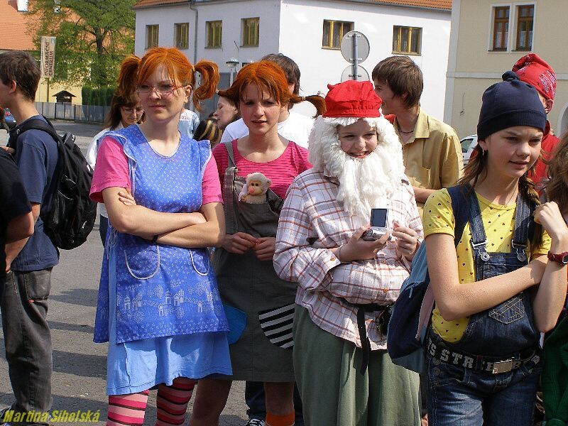 Stříbrští studenti ze třídy G5 místního gymnázia připravili majáles v centru města, který zahájili dlouhým průvodem. Temátem májových oslav byly pohádkové bytosti. Kromě tradičních soutěží, her a výhodných nákupů, se mohli návštěvníci také nechat oddat v místním háječku, nebo se pobavit s vystupujícími kapelami Pornografic Girl, Vipýchaná fčela a SPZ 06 - 05 Velký aplaus stržili také chlapci ze skupiny Street Runners za jedinečné vystoupení plné pohybu a nebezpečných skoků. „Takové číslo cvičíme měsíc až dva. Baví nás to, i když někdy může dojít k úrazu. Já sám to provozuji už pět let a učím to další kluky," řekl nám Richard Beneš. Ani děvčata se nedala zahanbit a zatančila v rytmu úvodní písně „Znáte Bořka". „Přišly jsme mladší spolužáky podpořit a podívat se, jak jim to jde. Také se moc těšíme na kapely a večerní majálples," užívaly se bohatého odpoledne Bibiana Zwettlerová a Lenka Minaříková z G6. Posoudit práci svých ratolestí přišli i rodiče. „Líbí se nám, že mládež dodržuje tradice, naše Eliška tím teď celý měsíc žije, připravovala se spolužačkami všechno možné od lístků po plakáty. Večer ještě bude moderovat na plese," jsou hrdí na svou dceru Pavla a Lenka Soukupovi ze Sulislavi. Velká fronta se tvořila u oddávacího háje. „Dnes jsme uzavřeli asi tři desítky svateb, z toho byli asi dvě třetiny 4% svazků. Obřad je jednoduchý, snoubenci si dají manželský slib, políbení, vymění si prstýnky a dostanou oddací list," řekly nám oddávající Klára Šedivá a Michaela Kaněrová, kterým asistovali i moderátoři Ondřej Jaroš a Patrik Samko. Ondřej Jaroš se stihl také oženit, za svou vyvolenou si vybral učitelku Janu Kutnou. „Majáles je pěkný, moc se nám líbily pohádkové bytosti," ohodnotila oslavy máje Lucie Křížová ze Stříbra. Další fotografie budou od zítra na : Dne 25.04.2009:Martina Sihelská Pro reakci na článek musíte být přihlšen |