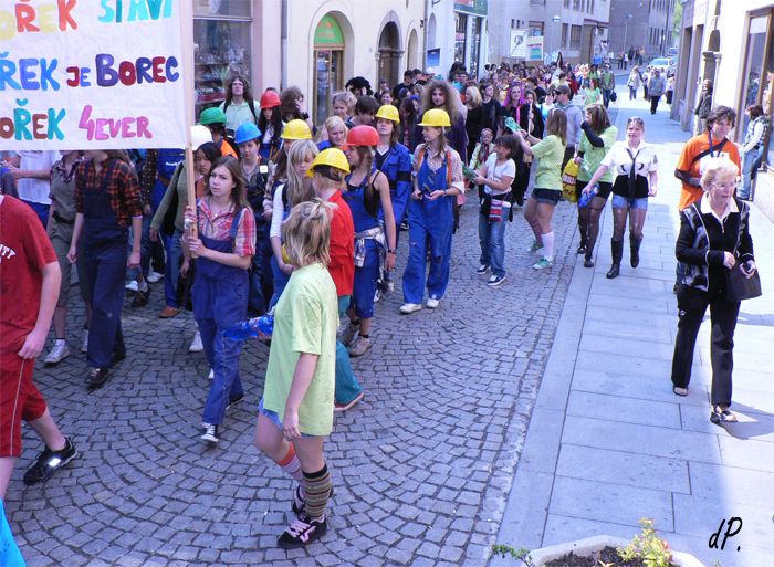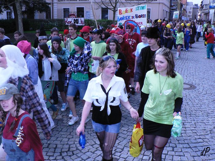 Studentská oslava přicházejícího léta, máje a krás života - to je Majáles I letos stříbrští gymnazisté nabídli veřejnosti skvělou zábavu. Letošní šestnáctý ročník se opravdu vydařil, i počasí studentům přálo. Ve 14 hodin vyšel od budovy gymnázia průvod masek zaměřených na postavičky z pohádek. Zastavil se na náměstí, kde pan starosta města Stříbra Mgr. Miroslav Nenutil symbolicky předal studentům klíč od města. Zde se také odehrával další program Majálesu. Poslechli jsme si kapely Pornografic Girl, Vipýchaná fčela a SPZ. Zhlédli jsme vzrušující vystoupení mladých kluků, kteří si říkají Street raners. Předvedli sport zvaný Le parkour. Nechybělo ani tradiční vyhlášení krále a královny Majálesu. Program byl opravdu pěkný. Studenti ukázali, že není důvod jezdit na majáles do Plzně, že ve Stříbře máme možnost výborně se bavit a Majáles tu má už tradici. Večer zábava pokračovala majálplesem pořádaným studenty obchodní akademie. dP. Dne 25.04.2009:Pavla Deredimosová Pro reakci na článek musíte být přihlšen |
