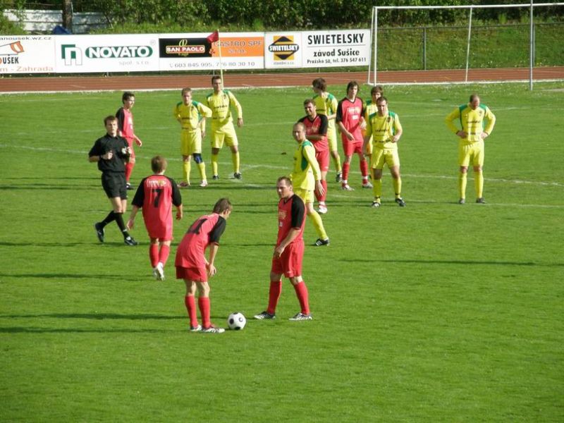 Baníkovci zaspali i vstup do druhého poločasu. Kočí se na lajně uvolnil, zatáhl míč až před branku a střídající Farták měl jednoduchou úlohu - 2:0. Jednu z mála pěkných akcí hostů předvedl ve 47. minutě Pelán, který prošel přes polovinu hřiště a míč doslova dovedl pouze do rukavic Míčka. Farták měl gól na kopačce i v 53. minutě, ale Kos mu včasným vyběhnutím zmenšil úhel a míč jen těsně minul branku Baníku. Od 56. minuty měli Baníkovci výhodu přesilové hry, když byl za urážku rozhodčího zbytečně vyloučen domácí Kočí. Na trávníku se však toto vyloučení vůbec neprojevilo a domácí byli i nadále aktivnější a fotbalovější. Domácí Farták mohl přidat další gól v 63. minutě, když Kosovi vypadl balón. Své zaváhání však napravil a pokus sušického útočníka zlikvidoval. Trenér Baníku Jaroslav Lorenc se pokusil oživit hru svých svěřenců několikerým střídáním, ale ani to nepomohlo, a tak stříbrští hráči odjeli ze Sušice s prázdnou a dovolili svým pronásledovatelům stáhnout náskok na pouhý 1 bod.
