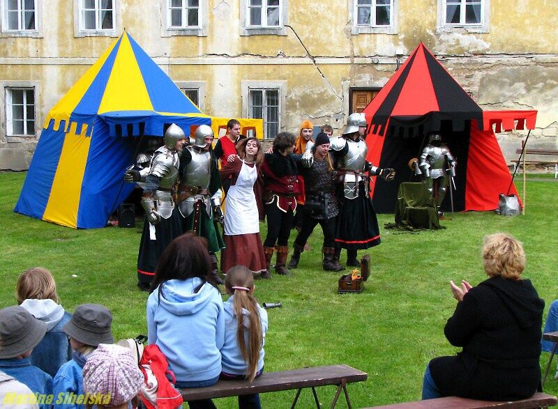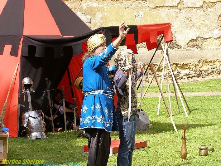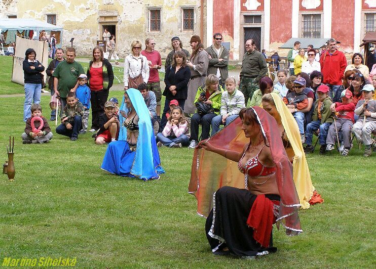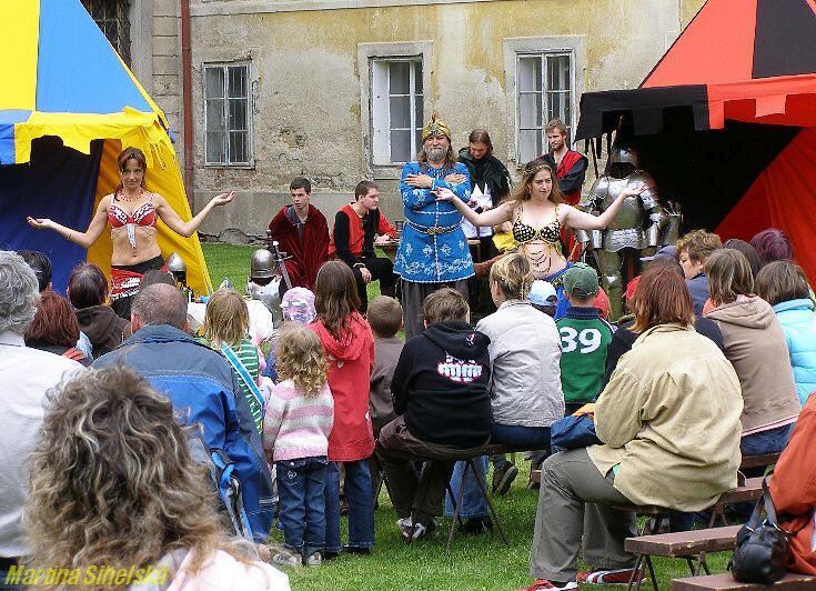Nádvoří bylo plné stánků Historický šerm, divadlo, orientální tanečnice a fakír předvedli své umění na nádvoří kláštera v Kladrubech. K vidění byli i kováři s výhní, stánky s rozličným zbožím a děti se vozily na ponících. Další foto (později i video) na: http://tachovsky.denik.cz/zpravy_region/obrazem-na-jarmarku-bavili-divaky-tanecnice-i-serm.html