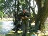 Selátko z tomboly putuje do Těchlovic Rybářský spolek Slunka uspořádal rybářské závody v Sytně. "Jde o 13. ročník, přihlásilo se 56 účastníků, z toho jedna žena a čtyři děti," řekl nám hospodář Oldřich Vrzala. Na vítěze soutěže čekaly rybářské ceny, nechyběla ani bohatá tombola, kde bylo výhrou živé sele. To nakonec putovalo s Davidem Bouzkem do Těchlovic. "Zatím moc neberou, mám jednoho kapra a okouna. Chytám na žížaly," prozradil nám Petr Chvála ze Stříbra. Spolu s ním přijela i dcera Markéta. "Ten kapr byl malý, museli jsme ho pustit, ale okouna jsme odnesli za hráz," doplnila tátu Markétka Chválová. Stříbrský Martin Valíček také moc radosti nejevil. "Je to propadák, nic nebere, zkouším to na červy, ale v tomhle koutě máme všichni jen po rybě," říká zklamaně rybář. O kus dál jsou rybáři optimičtější. "Jo, berou, je to dobré, jsou tu i pstruzi, což mě překvapilo, už jich mám osm a jednoho kapra. Asi mám dobré červy a piju dobré pivo, že mi to tak jde," smál se hněvnický rybář Petr Čech. Nakonec si ceny rozdělili rybáři takto: První s 85 body byl Vladimír Čechura a vyhrál naviják. Druhým byl Petr Čech se 46 body a odvezl si prut. Na třetím místě se umístil Jan Ročňan se 30 body a získal tak podběrák. Nejúspěšnější ženou byla Marie Morávková a z dětí se nejvýše umístil Karel Mülling z Hvožďan. Zde odkaz na článek v TC Deníku