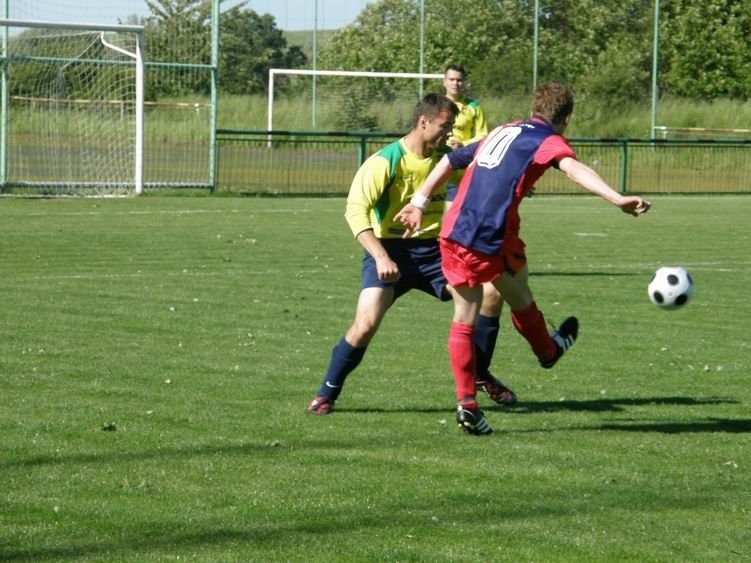 První minuta druhého poločasu přinesla šanci domácích, ale Hajšmanovu střelu Kos vyrazil. Na druhé straně se opět vyznamenal při střele Bednáře domácí Lösch. Emoce vyvolala 49. minuta, kdy byl v pokutovém území domácích podražen Petraška, ale píšťalka rozhodčího zůstala němá. Hosté byli i nadále aktivnější, ale chlumčanský brankář byl k nepřekonání. V 63. minutě byl domácím obráncem stažen Pelán, ale penalta se opět nepískala. Zle pro Baník mohlo být v 78. minutě, Kos musel vyběhnout, aby zabránil domácím v postupu na svou branku, míč se však dostal jen na kopačky domácího útočníka, který ho poslal zpět do úplně prázdné brány. Šaman však Kosa na brankové čáře zastoupil. Domácí se však přece jen dočkali. V 81. minutě obstřelil Dušek zeď při přímém kopu a Baník prohrával 3:2. Ani za této kritické situace se Baníkovci nevzdali a domácí tlačili. V 86. minutě se odražený balón dostal na kopačky Kertise a matador výstavní střelou pod břevno nedal domácímu gólmanovi šanci - 3:3. Remíza však hráčům Baníku v tuto chvíli nestačila k jistotě postupu. Díky několikerému ošetřování v průběhu druhého poločasu nastavil hlavní rozhodčí 4 minuty, ve kterých se prosadil i druhý matador Stříbra Šaman a gólem na 3:4 v 92. minutě otevřel fotbalistům Baníku Stříbro brány Krajského přeboru.