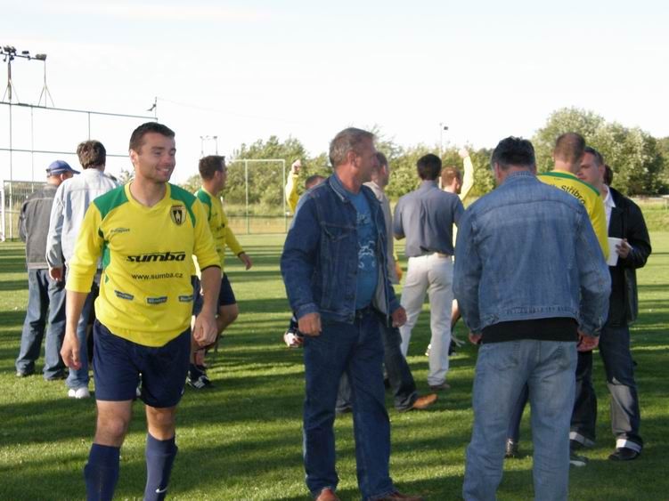 Na oslavu jistoty postupu však museli Baníkovci ještě několik minut po skončení utkání počkat, protože ještě nebyl znám výsledek druhého klíčového utkání Horní Bříza - Rozvadov. Když však pozorovatel z Horní Břízy oznámil výhru domácího celku, mohly oslavy naplno vypuknout již na hřišti...