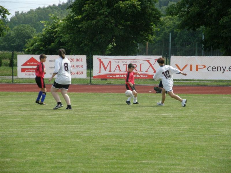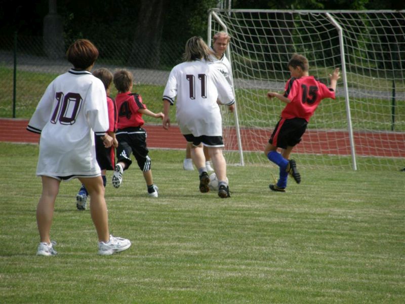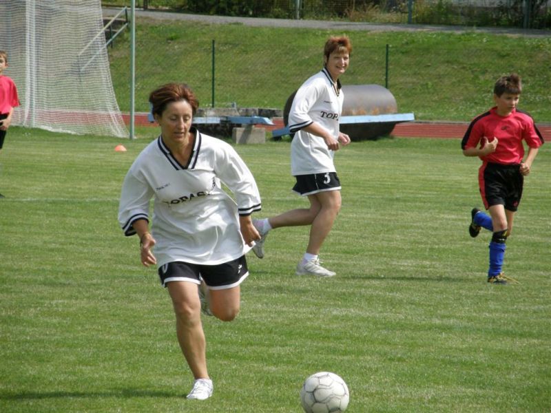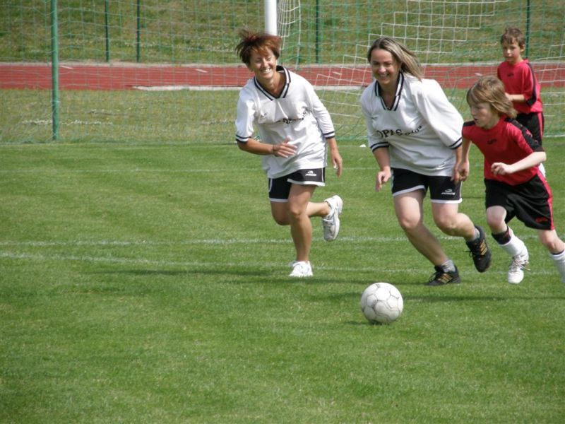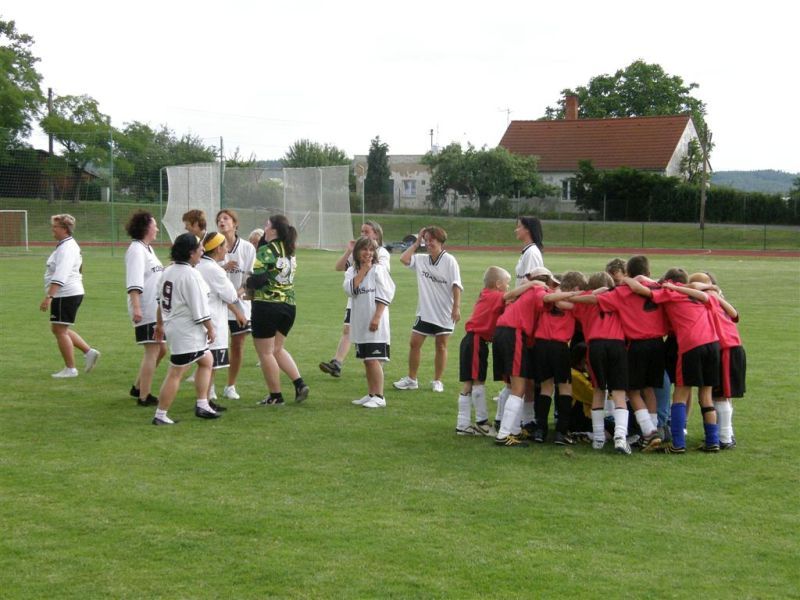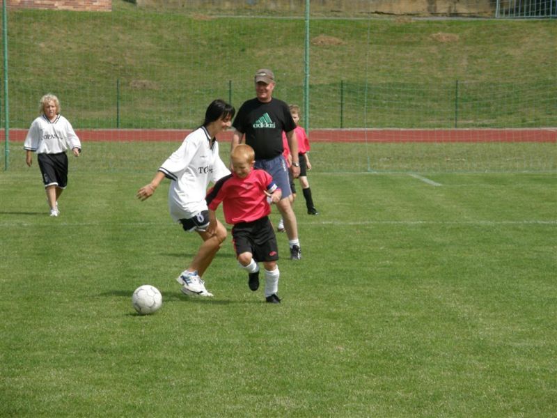 a bylo se na co dívat… Malé fotbalové naděje si nejprve zahrály mezi sebou a poté již na trávník vyběhly maminky, aby ukázaly svým dětem, po kom že ratolesti zdědily fotbalové nadání. Zápas, který řídil zkušený sudí a trenér mládeže Jan Holub, byl dlouho vyrovnaný. Malí fotbalisté se sice ujali vedení, ale maminkám se neuvěřitelným odhodláním podařilo vyrovnat. V nastaveném čase, když už se zdálo, že dojde na prodloužení a penalty, ale nakonec vstřelili svěřenci trenéra Petra Žíly vítězný gól. Diváci ani samotní aktéři však o penalty nepřišly a zábavu tak bylo ještě postaráno. Kdo nakonec v penaltovém rozstřelu zvítězil nebylo důležité.