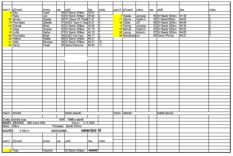 Již 39. ročník běhu kolem Mže …. (v upoutávce před závodem byl mylně uveden 34.ročník) pořádali atleti Baníku Stříbro. V sobotu 3. října 2009 se účastníci vydali na trasu v krásné podzimní přírodě. Trať vedla ze stadionu Baníku po pravém břehu Mže do Vranova a zpět. Závod byl vypsán jen v kategoriích dospělých a měřil 9.500 m. Je součástí soutěže Bodit cupu - O nejlepšího běžce Tachovska. Na startu chyběl pro onemocnění Tomáš Jaša. Favoritem se tak stal jeho soupeř z dorostenecké kategorie - Vlastimil Šroubek mladší z AC Marathon Plzeň. Ten také nenechal nikoho na pochybách a vcelku suverénně zvítězil v čase 33:35 min. Na 2. místě doběhl v čase 34:39 min. Pavel Razým z SC Plzeň. Ten startoval ve Stříbře po delší době, přece jen lyžařská specializace vyžaduje své. Jeho oddílový kolega Jakub Novák doběhl na 4. místě v čase 35:48 min. Mezi oba závodníky se vklínil velmi dobře běžící Jan Bíba z SVS B. Stříbro časem 35:45 min. Po delší době tak byli 3 nejrychlejší běžci z kategorie mužů do 40 let. V kategorii veteránů do 50 let běžel velmi dobře Josef Zíka. Po celou trať se držel v popředí závodu a svoji kategorii vyhrál v dobrém čase 35:57 min. Vedoucí závodník Bodit cupu Jan Flaks podává stabilně vyrovnané výkony a nejinak tomu bylo i v sobotním závodě. Doběhl za Zíkou na 2. místě a časem 36:42 min. potvrdil svoje vedoucí postavení v soutěži. Třetí byl Zbyšek Zeman z TK Slavia VŠ Plzeň a stopky mu naměřily čas 37:41 min. V kategorii veteránů do 60 let po delší době vyhrál Jaroslav Vlasák z SVS B. Stříbro. Jeho čas 41:30 min. je průměrný. 2. doběhl Vladimír Sýkora s odstupem dvě a půl minuty. 3. místo za čas 44:54 min. obsadil Jiří Čeček, kterému závod mimořádně „sedl". Kategorie žen byla svým obsazením spíše dorostenecká. Vyhrála ji Karolína Hrubá z Baníku Stříbro, která ji běžela jako trénink. Tomu také odpovídal dosažený čas 46:49 min. Druhá doběhla Eliška Jabůrková ze Sokola Damnov (54:08 min.) a 3. její sestra Anežka (1:02:35 min.). Po delší době vypsali pořadatelé kategorii veteránů nad 60 let. Zúčastnil se pouze jeden účastník - Vladimír Tolar. Proto zřejmě již v dalších závodech tato kategorie vypisována nebude. Startérem závodu byl senátor a starosta města Mgr. Miroslav Nenutil. Ten také převzal záštitu nad závodem. Na otázku, zda začne běhat, však odpověděl negativně. Celkově se závod i díky počasí vydařil. Nyní již bude následovat řada přespolních běhů, na které jsou zájemci zváni.Dne 05.10.2009:Ing. Vladislav Moravec Pro reakci na článek musíte být přihlšen |