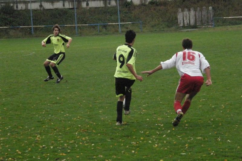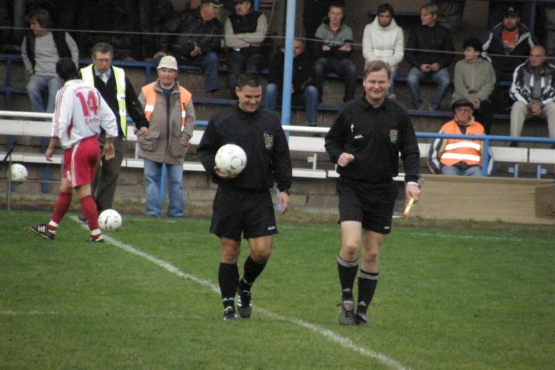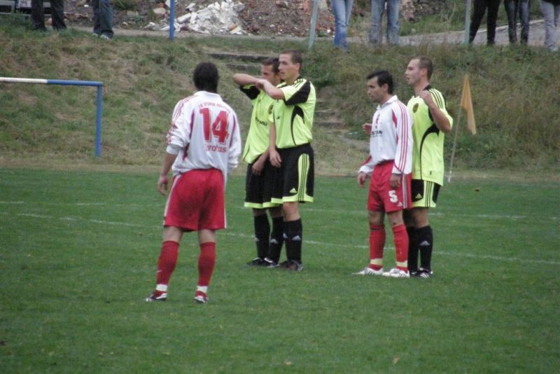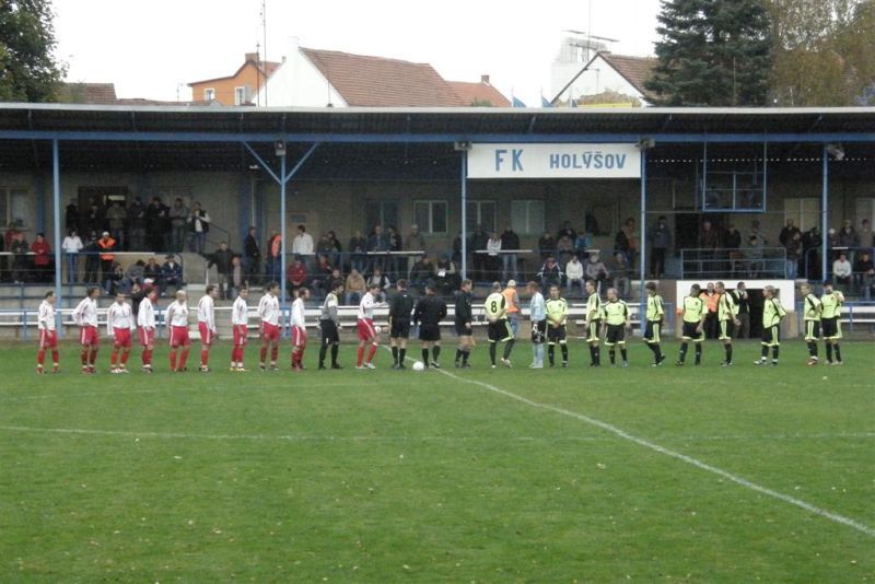 Fotbalisté Stříbra si i po uplynulém víkendu udrželi vedoucí pozici, když dokázali porazit nevyzpytatelný Holýšov. Hosté ze Stříbra vstoupili do utkání aktivně, již ve 3. minutě se přes obránce prodíral Komárek, domácí obránce skluzem míč netrefil, ale rozhodčí odpískal faul stříbrského útočníka. Naopak domácí hráči si v dalších minutách utkání dokázali vybojovat několik rohových kopů, ale pozorně hrající stříbrští hráči v čele s gólmanem Matějkou jim nedovolili ohrozit branku. V 17. minutě vyslal dalekonosnou střelu Pelán, ale Marcel v brance Holýšova si jí pohlídal. Z následného protiútoku mohli skórovat domácí, když se do zakončení dostal Lukáš. Matějku však na brankové čáře zastoupil Demjan. Otřepané nedáš, dostaneš, se zde opět potvrdilo. Ve 22. minutě se do útoku vydal Šaman, přesně odcentroval do malého vápna domácích a Komárek z blízkosti otevřel skóre - 0:1. Hra se i nadále odehrávala mezi šestnáctkami, pozorně bránící hráči Baníku však domácí do zakončení nepouštěli. Naopak s přibývajícími minutami si začali stříbrští hráči vytvářet tlak i slibné příležitosti. Střelu Floruse stihli ještě domácí obránci zablokovat a následnou dorážku Komárka vytlačil domácí gólman na roh. Baník však dokázal převahu přetavit v gólovou pojistku. Čížek z rohu našel ve vápně Demjana, který ve 31. minutě hlavou přidal druhý gól Stříbra - 0:2. I další roh Baníku před poločasovou přestávkou volal po brance, ale Pelán tentokrát nedokázal míč usměrnit mezi tyče.