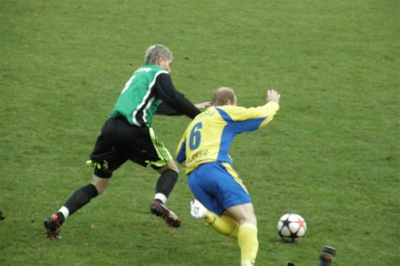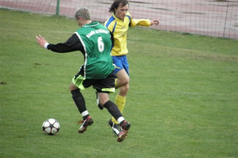 První poločas přitom nasvědčoval vyrovnané taktické bitvě, kterou rozhodne jedna branka… Již ve 4. minutě využil zaváhání kolovečské obrany Dyk, předložil míč nabíhajícímu Komárkovi, který tísněn obráncem hostů mířil vedle. Na druhé straně se přes stříbrské obránce proháčkoval Bittengl a Matějka musel pohotovým zákrokem odvracet alespoň na roh. Matějka podržel svůj tým i v 18. minutě, když se z dálky napřáhl Kliment a domácí gólman vytáhl míč mířící pod břevno na roh. Hosté hrozili i nadále. Ve 28. minutě se k míči lacino dostal Milota, našel osamoceného Šperla, který však ve vyložené šanci mířil vysoko nad domácí branku. Ve 40. minutě byli hosté blízko k vedoucímu gólu, ale závar pře brankou Baníku nevyužili a stříbrská obrana stihla míč odkopnout. Z následného protiútoku mohli těžit domácí, ale Vachtlova střela neprošla přes obranný val hostů a následná dorážka Pelána se nevešla mezi tyče. Když už se zdálo, že budou oba týmy docházet do šatny za bezgólového stavu, utekl stříbrským obráncům Černohorský. Jeho střelu Matějka neudržel a v následném závaru se nejlépe zorientoval Bittengl, který míč uklidil do domácí branky - 0:1.