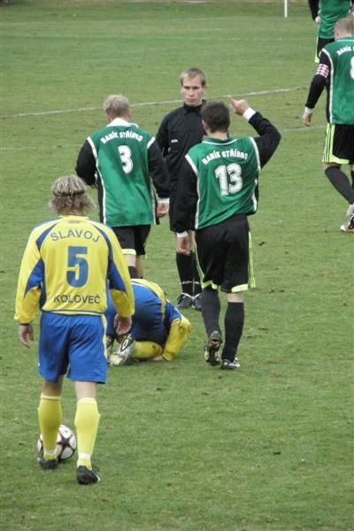 V úvodu druhého poločasu musela obrana Kolovče na poslední chvíli hasit šanci Komárka, kterého vyslal Dyk. Bohužel to byla poslední spolupráce obou stříbrských hráčů, protože v 57. minutě byl po druhé žluté kartě vyloučen Dyk. Hosté tak měli výhodu přesilové hry. Paradoxně to však byli domácí, kteří mohli vyrovnat. Šaman poslal do úniku Komárka, kterého bohužel tváří tvář vychytal v 61. minutě kolovečský Janča. O minutu později zahrál hostující útočník před brankou Baníku rukou, což však rozhodčí neviděl. Vzápětí však velmi dobře viděl kontakt míče s rukou Demjana a odpískal pokutový kop proti domácím. Hostující Šperl se nemýlil - 0:2. Když přidal v 70. minutě Kliment třetí branku hostů a domácí Jareš viděl v 73. minutě rovnou červenou kartu, bylo po zápase. Do konce utkání přidali ještě Duchoň a Šperl další 2 branky a zcela završili prohru domácího týmu.