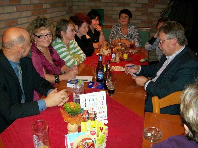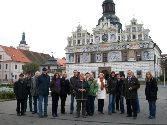 spolupracujících na projektu Comenius – Zlatá cesta proběhlo v pátek 23. 10. 09 ve Stříbře... Po krátkém přijetí na radnici a prohlídce města (největší nadšení vzbudila již zmíněná radnice a kostel Všech svatých) se skupinka přesunula k budově Gymnázia. Tady je přivítal ředitel školy, Mgr. Milan Deredimos, a předvedl německým kolegům to nejzajímavější, co školní budova nabízí – multimediální učebnu s interaktivní tabulí, posilovnu, tělocvičnu, knihovnu se studovnou, aulu, učebny výpočetní techniky, výtvarné výchovy, chemie, biologie,… Nad společnou večeří byly naplánovány další akce projektu Comenius, a to listopadová návštěva studentů Gymnázia ve Vohenstraußu, prosincové pracovní setkání pedagogů v Realschule, Vánoční koncerty ve Stříbře a Vohenstraußu a výměnný pobyt studentů v květnu a říjnu 2010. V rámci přípravy listopadové exkurze byly předány do rukou zástupce ředitele Realschule, pana Johanna Fischera, seznamovací dopisy od žáků kvarty Gymnázia pro jejich německé kamarády. Skupina německých pedagogů pokračovala druhý den v poznávání našeho regionu a navštívila mimo jiné město Plzeň, zámek Kozel a klášter v Kladrubech. Mgr.Marie Mašková, Bc.Petra Baxová Dne 28.10.2009:Mgr.Marie Mašková, Bc.Petra Baxová Pro reakci na článek musíte být přihlšen |