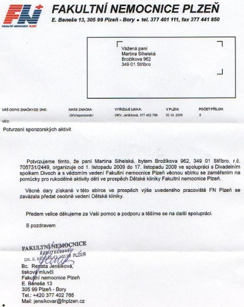 anebo je můžete zanechat v období 1.11.09 - 17.11. 09 v prodejně Čtyřlístek