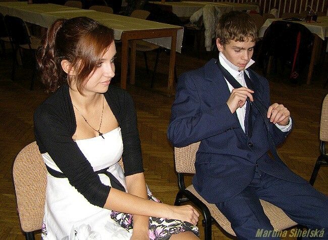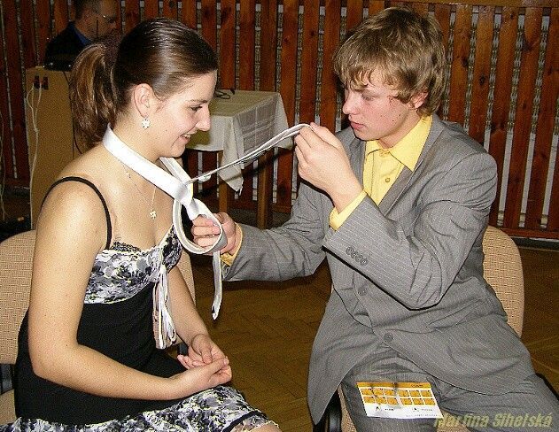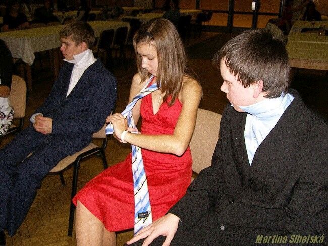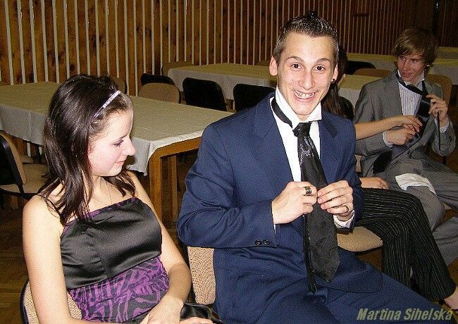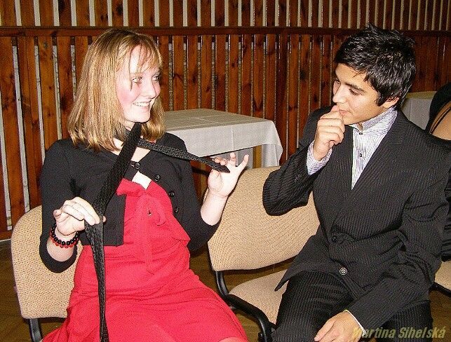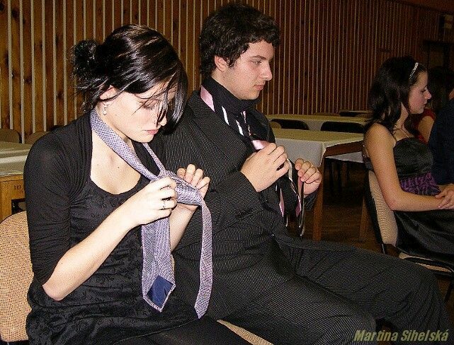 Jak si počínali naše ratolesti u vázání několika uzlů... Taneční kurz ve Stříbře má za sebou další vyučovací část. Účastníci se totiž naučili vázat dva druhy uzlů na kravatě. Že při tom byla spousta legrace, to naznačovaly komentáře typu - pojď, uberu ti trochu vzduchu nebo - neboj, jen tě trošku přiškrtím, které se ozývaly ze všech stran. O kravatách si tanečníci vyslechli také zajímavé vyprávění od tanečního mistra Pavla Cícha. „Kravaty se dají vázat na 130 způsobů, ale nám dnes postačí dva," zahájil výpravu Cích. „Kravata se narodila ve Francii za vlády krále Ludvíka XIV. , kdy jej přijeli podpořit chorvatští vojáci, jejichž tradiční oblek zahrnoval i barevné šátky kolem krku. Móda ve Francii byla vždy chytlavá, a tak se kravaty brzy staly součástí francouzské armády. Postupně ze slova „la Croate" (Chorvat) vyvinulo slovo „la cravatte", které se používá dodnes," nastínil tanečníkům historii taneční mistr. Dne 17.11.2009:Martina Sihelská Pro reakci na článek musíte být přihlšen |