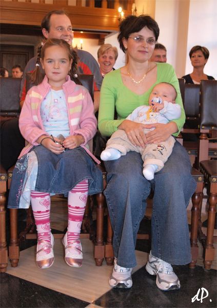 tradičního vítání občánků se účastnilo jen 8 dětiček Páté vítání občánků v tomto roce se uskutečnilo 25. listopadu v obřadní síni radnice. Z patnácti přizvaných se slavnostní události účastnilo pouze 8 batolat. Slabou účast nejspíše odůvodňuje současné řádění chřipek. Nové občánky tradičně přivítal předseda SPOZu Ing. Josef Sazama a starosta města Mgr. Miroslav Nenutil. Součástí byl malý tradiční kulturní program dětí z mateřské školy v Pastýřské ulici. Děti přítomné potěšily svým recitačním vystoupením. Pro vítaná miminka byl připraven malý dárek, pro rodiče kytička. Přejeme našim nejmenším, aby vyrůstali ve zdraví a kráse a ať se v životě rozutečou kamkoli, ať jim alespoň pamětní listy a fotografie připomínají jejich rodné město Stříbro. Jmenovitě to jsou: Miroslav Uzel, Sebastián Gábor, Filip Junek, Nela Markalousová, Petr Vítámvás, Ondřej Šindelář, Ladislav Nedbal, Aneta Sosnová, Daniel Pivoňka, Petr Beták, Barbora Špačková, Eliška Zezulová, Kristian Zeithaml, Nicol Boudová, Adam Pašek Dne 25.11.2009:Pavla Deredimosová Pro reakci na článek musíte být přihlšen |