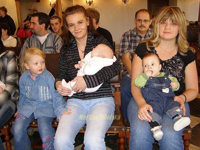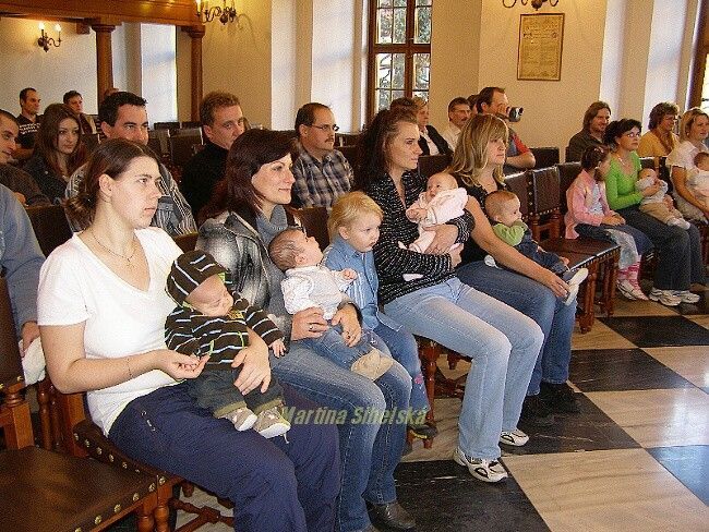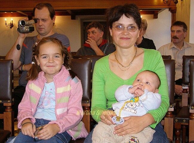 Josef Sazama uvítal osm batolat Celkem osm batolat z pozvaných patnácti se sešlo na stříbrské radnici, kde je uvítal Josef Sazama a starosta města Stříbra Miroslav Nenutil. Dětem zazpívaly o pár let starší předškoláci z MŠ z Pastýřské ulice. S nejmenšími přišli také jejich sourozenci, například s Ladislavem Nedbalem se dostavila i jeho sedmiletá setřička Kateřina. "Bráška je fajn, je hodný, ale ségra by byla lepší, ta by si se mnou hrála s panenkami," uvažovala Katka. Pamětní list a dárek si domů odnesly tyto děti: Miroslav Uzel, Nela Markalousová, Ladislav Nedbal, Daniel Pivoňka, Eliška Zezulová, Kristian Zeithaml, Nicol Boudová, Adam Pašek. Fotografie si můžete objednat ve Fotoexpresu Trávníčková pod poliklinikou. Dne 25.11.2009:Martina Sihelská Pro reakci na článek musíte být přihlšen |