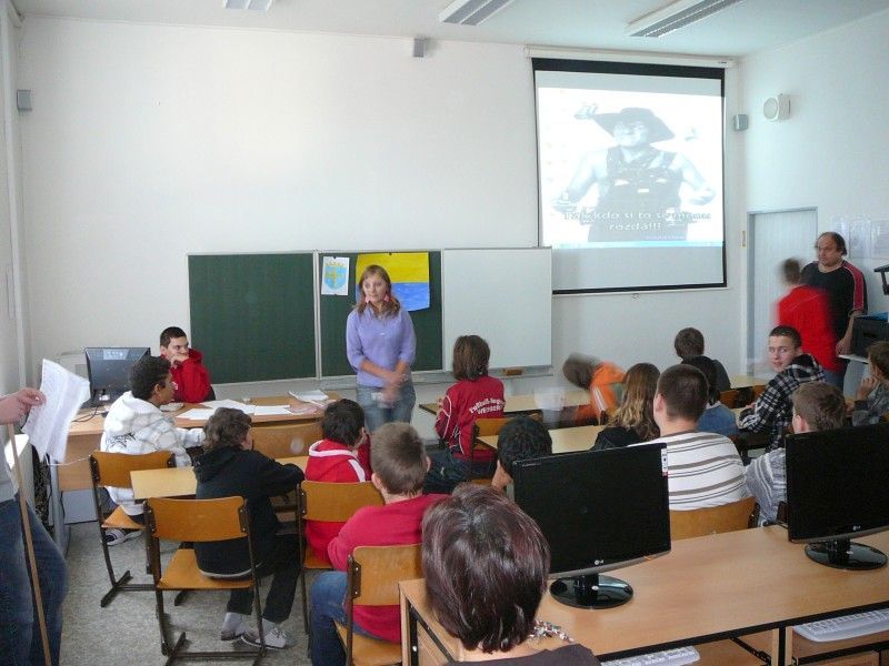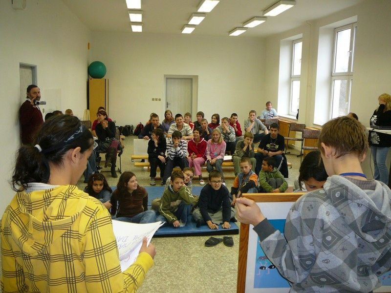 Poslední listopadový pátek byl v ZŠ Stříbro, Revoluční jiný než obvykle, však se na něj žáci 2. stupně chystali celých 14 dní. Projektový den byl vyvrcholením jejich úsilí zpracovat informace o Polsku a hlavně o mezinárodním projektovém setkání partnerských škol v rámci projektu Stavíme náš evropský dům programu Comenius. Setkání se uskutečnilo v září letošního roku v polských Glucholazech. Den začal společným zahájením v malé tělocvičně. Po úvodních slovech ředitele školy Mgr. Milana Sosíka jsme shlédli prezentaci fotografií z minulých setkání, z Německa, Čech a z nedávného polského setkání. Další 3 vyučovací hodiny byly ve znamení usilovné práce na přípravě vlastní závěrečné prezentace. Prezentaci zahájili za pomoci zhotovených didaktických pomůcek obecnými a geografickými informacemi o Polsku žáci VIII.A. Jejich křížovka a soutěž ve skládání polského znaku chytla každého. Žáci VI. třídy nám přiblížili polskou kuchyni, mohli jsme ochutnat výborné skládané obložené chlebíčky – kanapky. A protože nejen chlebem živ je člověk, zazpívali šesťáci polskou písničku a zahráli slezskou pohádku o tom, jak švec přechytračil čerta. Chlapci ze VII. třídy se věnovali tématu Osvětim a své povídání doplnili promítáním autentických fotografií. Po přestávce program pokračoval v naší počítačové učebně. Třída VIII.B využila webových kamer ve městě Opole a my jsme se tak mohli vydat na virtuální prohlídku komentovanou žáky. Na závěr byl promítnut krátký dokumentární film, zachycující partnerské setkání v Polsku. Projektové dny bývají obvykle velmi náročné na přípravu i realizaci. Informace a znalosti, které si účastníci odnášejí, hned tak nezapomenou, jsou totiž umocněny jejich vlastním prožitkem.