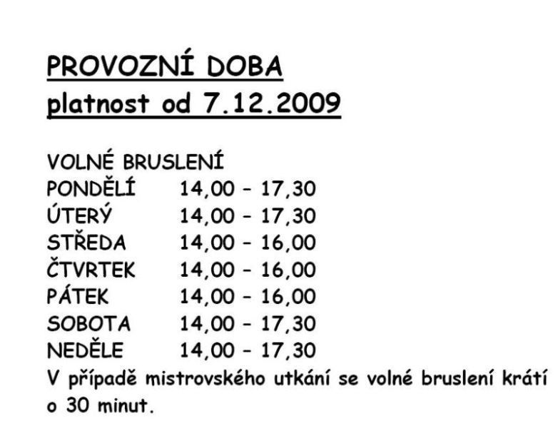 STŘEDA, ČTVRTEK, PÁTEK - 14,00 - 16,00V případě mistrovského utkání se volné bruslení krátí o 30 minut.BRUSLÍME I O VÁNOCÍCH A O PRÁZDNINÁCH !Jan Šůcha |