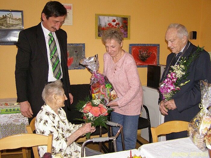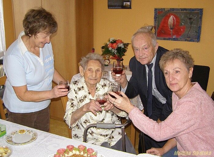 Dnes slaví paní Kateřina Argmanová krásných 99 let. Přesně 11. prosince 1910 se narodila v Sulislavi Kateřina Argmanová. Její život byl těžký, již ve 13-ti letech chodila pěšky ze Sulislavi do Pernarce, kde pak naložila chléb na vůz a jela jej rozvážet do Trpíst. „Časem jsem si koupila kolo, abych nemusela pěšky, bylo to přece jen docela daleko," vzpomíná oslavenkyně. Dlouhá léta také pracovala u sedláka. V roce 1933 se vdala, ale manžel brzy zemřel a děti neměli. Tři bratři paní Kateřiny zemřeli během války, a tak paní Argmanová přišla o všechny své nejdražší. Pracovala také v Rudných dolech ve Stříbře, kde tlačila vozíky s rudou. „Všude jsem chodila pěšky nebo na kole. V létě, v zimě, za každého počasí a nakonec, když doly zavřeli, mi bylo jen 57 let, a tak jsem dostala jen malý důchod, ale uměla jsem s ním vyjít," říká čiperná seniorka. Kateřina Argmanová žila ještě před třemi měsíci ve Stříbře v domě s pečovatelskou službou, ale protože ji trochu zlobí zdravíčko, zařídila jí vzdálená příbuzná pokoj v domě pro seniory v Plzni, aby se o ni mohla starat. „Chodím sem stále, prateta je pořád upovídaná a všechno jí moc chutná. Jen má velké závratě, a tak se bez pomoci neobejde. Nejraději chodí do klubu, kde pořád něco vyrábí," usmívá se Miloslava Königová z Plzně. Oslavenkyně nikdy nekouřila a koníčky byly to poslední, na co měla čas. Měla moc ráda les, občas pletla ponožky, ale opravdu ráda pomáhal starším lidem. „V Sulislavi jsem se občas starala o sousedku paní Pendlovou, hodně také vzpomínám na další občany, na Rudolfa Hrušku, Michalcovy či Strohschneiderovy, to byli samí hodní lidé, bylo mi tam dobře," vypráví sulislavská rodačka. Jídlu se nikdy nevyhýbala, dodnes sní vše, ale nejraději polévky a vepřovou se zelím. A pochutná si i na pivu či becherovce. „Tady dostáváme tolik salámu, to jsem nikdy v životě neměla, mě pořád chutná. Vidíte, moje maminka se dožila šestaosmdesáti let, říkala jsem si, to bych se chtěla taky dožít a ono už je mi devětadevadesát a jsem tu, asi na mě někde zapomněli," usmívá se Argmanová, která se slzami v očích děkovala stříbrskému starostovi Miroslavu Nenutilovi, svému lékaři Jaroslavu Plecháčovi a Zdeňce Horváthové ze SPOZu za dárky. Dne 11.12.2009:Martina Sihelská Pro reakci na článek musíte být přihlšen |