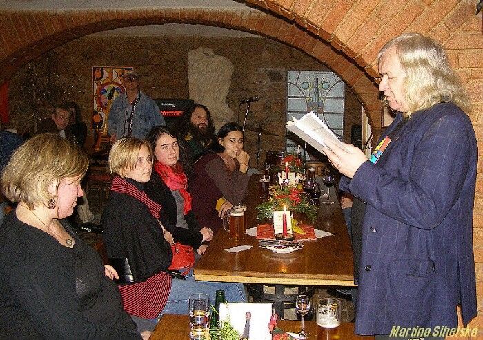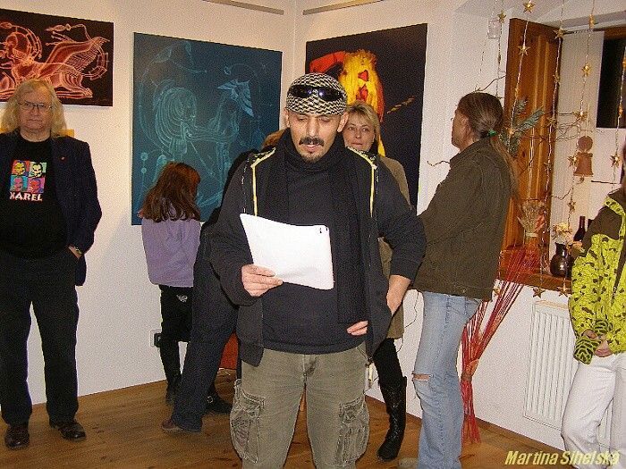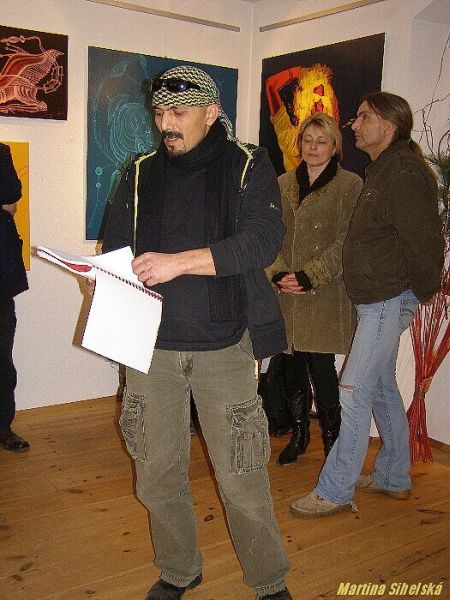Básník, sochař, grafik a malíř v jedné osobě, který se skrývá pod jménem Yanus, zahájil výstavu svých děl v Galerii U Rybiček ve Stříbře. Slavnostní vernisáž výstavy přijel podpořit také Ivan Martin Jirous, řečený mezi přáteli Magor, který zahájil výstavu svým autorským čtením. Ani Yanus nezůstal pozadu a přečetl některé své básně. Výstavu zpestřilo také hudební vystoupení kapely Hovado. Yanus je znám jako všestranný umělec. Posledních šest let žil v Praze, kde vystavoval v různých galeriích, autorovy texty také několikrát vyšly v samizdatech a Labytrinth Revue, v současné době se umělec stěhuje do Stříbra, neboť čeká přírůstek do rodiny a zároveň připravuje vydání ucelené sbírky svých textů a básní. „Je zvláštní, všechny náměty v něm nějakou dobu uzrávají, než se rozhodne k realizaci. Pak si vzorně uklidí, připraví plátno, štětce a další potřebné věci a začne. V té době jej nesmí nikdo rozptylovat a rušit, proto převážně pracuje v noci," řekla nám autorovo přítelkyně Daniela Nová. Autor sám přiznává, že při práci s ním mnoho zábavy není. „Nejdříve se potřebuji zbavit přebytečné energie, pak se zavřu a potřebuji prostě klid, nesmím si přerušit myšlenku," usmívá se umělec, kterého přítelkyně definuje jako zodpovědného bohéma. Návštěvníci hodnotili výstavu kladně. „Obrazy působí velmi příjemně, líbilo se nám i autorské čtení. Byl slyšet výrazný rozdíl, zatímco Yanus četl básně se současného života, u pana Jirouse byl slyšet takový ten podtext z dob komunismu," shodli se Jaroslava Dostálová a Jiří Valeš ze Stříbra. Výstava U Rybiček potrvá do konce února a díla jsou prodejná. Dne 13.12.2009:Martina Sihelská Pro reakci na článek musíte být přihlšen |