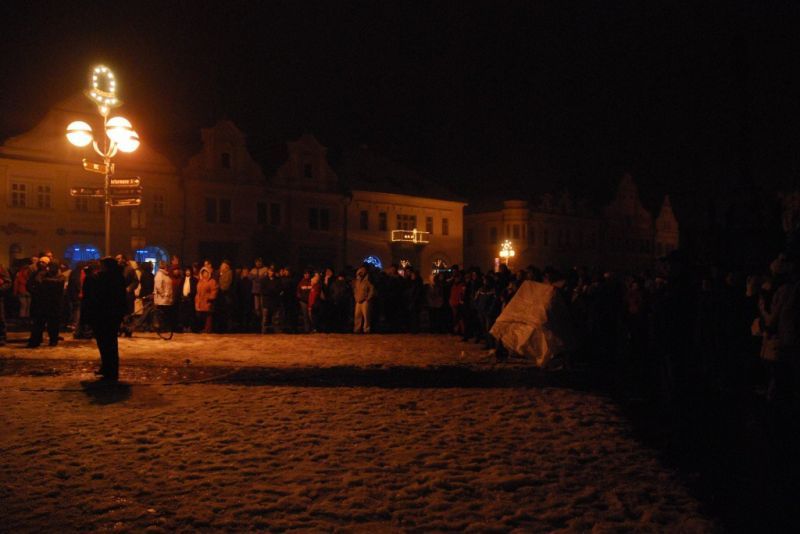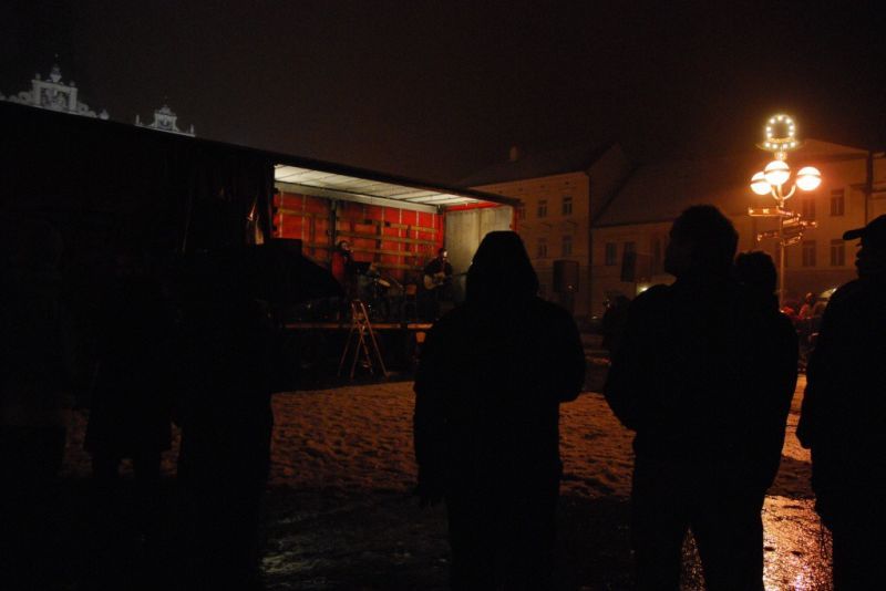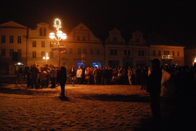 Přímo pod širým nebem na Masarykově náměstí ve Stříbře proběhla 24. prosince od 22.30 hodin Půlnoční bohoslužba. Už od deseti hodin se na náměstí shlukovaly skupinky lidí, byla slyšet vánoční přání, čerstvé zážitky od stromečků a před samotným začátkem bohoslužby bylo náměstí naplněné slavnostním očekáváním. Hudební skupina Církve bratrské z Plzně zahájila slavnost tradičními koledami a po té zazněly méně známé křesťanské písně. Slovo kazatele Zdeňka Šplíchala provázel nečekaný a houstnoucí déšť a tak do konce kázání vydrželi jen ti, kdo byli vybaveni deštníky, dobrým oblečením nebo velkým odhodláním. Ve vánočním slově zaznělo, že Ježíš Kristus, jehož narození se o Vánocích slaví, je často opomíjen. Zdobíme domácnosti, nakupujeme dárky, zpíváme koledy, navštěvujeme se, slavíme, ale oslavenec stojí stranou. Pro mnohé z nás jsou Vánoce traumatem – neúplné rodiny, lidi osamocené, zklamané, zoufalé žádné dárky nemohou uspokojit. Vánoce nám každý rok připomínají, že na svět se narodil někdo, kdo chce změnit naše životy, je skutečný, živý a touží se s námi setkat. Na závěr kázání zazněla výzva, aby se každý člověk sám přesvědčil, zda je Ježíš Kristus pouhou náhražkou nebo ryzím diamantem, který korunuje náš život. autor: Pavlína Štědrá