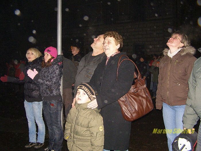 Začátek nového roku slaví stříbrští občané na náměstí, kde si mohou všichni popřát a připít punčem. Na místě nechyběla ani chlouba města, ve svých uniformách přišla i městská ostrostřelecká garda. „Scházíme se tak každoročně, letos jsme prodali stočtyřicet litrů punče a přes pět stovek hrníčků s novým letopočtem, tyto hrnečky pochází z chráněné dílny Exodus," řekl nám ředitel MKS Stříbro Petr Patočka. „Pozvali jsme také plzeňskou skupinu Ventus, která zde zahrála středověkou hudbu," dodal. U radnice se tak setkávají občané, aby si popřáli do dalšího roku. „Přišla jsem pozdravit své přátelé a také, jak se říká, vyvětrat se po dlouhé noci, šla jsem spát až ve čtyři ráno," smála se Marie Kolenová. „Hrála tu pěkná hudba, ještě se podívám na ohňostroj," řekla Kolenová ze Stříbra. Kolem 17-té hodiny se celé náměstí zaplnilo diváky, kteří napjatě očekávali avízovaný ohňostroj. „Mě se tu nejvíc líbí ozdobený vánoční stromeček a těším se i na ohňostroj," byla nedočkavá pětiletá Eliška Duspivová. Dne 01.01.2010:Martina Sihelská Pro reakci na článek musíte být přihlšen |