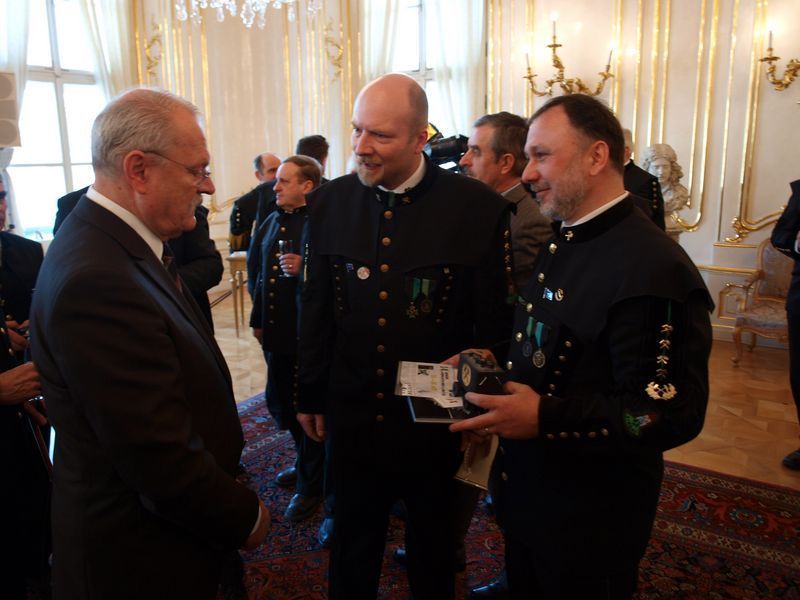 Na pozvání Sdružení banických a hutnických spolků ... Slovenska se představitelé Hornického spolku ve Stříbře ( Radek Strankmuller a Karel Neuberger ) zúčastnili ve dnech 19. a 20.ledna 2010 setkání u prezidenta Slovenské republiky Ivana Gašparoviče. Delegace hornických spolků a báňské komory byla velmi vřele přijata v prezidentském paláci při cca 40 minut trvající audienci. Po úvodních projevech pana prezidenta a předsedy sdružení ing. J.Malchárka byla volná zábava. Pan prezident se pozdravil s každým účastníkem osobně. Pan prezident byl obdarován dřevěnou plastikou s hornickým motivem. Poté byli zástupci královského horního města Stříbra a Hornického spolku představeni panu prezidentovi, který vyslechl naši zdravici a pozvání do našeho krásného města při příležitosti 14. setkání hornických měst a obcí ČR. Panu prezidentovi udělal mimo jiné velkou radost dar (keramický tuplák s hornickou tématikou našeho města). Závěrem se pan prezident vyfotografoval se všemi delegacemi společně a na přání i jednotlivě. Setkání proběhlo ve velmi vřelé atmosféře s výhledem, že se bude do budoucna každoročně opakovat. Pro nezasvěcené pan prezident je čestným členem Hornonitranského banického spolku v Pezinku a na slavnostním šachtágu v Banské Štiavnici byl přijat do stavu hornického. Poslední větou tohoto příspěvku je slib prezidenta Slovenské republiky Ivana Gašparoviče, že do Stříbra na 14. setkání pravděpodobně přijede. Zdař bůh Karel Neuberger