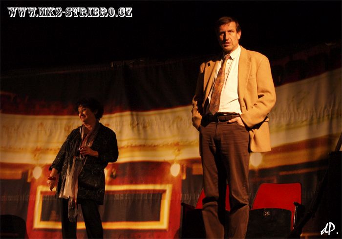 V kině Slávia vystoupil Václav Vydra a Jana Boušková Návštěvníci divadelního představení „Věrní Abonenti" se ve středu 17. února přesvědčili o tom, co se stane, když si manželé sednou v hledišti každý jinam a on dostane mladou půvabnou sousedku. Veselohru, která vychází ze skutečné události, režíroval Antonín Procházka. Hlavní postavou byl divák Ríša v podání Václava Vydry. Divadelní manželkou se mu stala Jana Boušková. „Vůbec mi nevadí, že jsme spolu na jevišti i doma. Naopak. Je to fajn," prozradil s úsměvem známý umělec. Ríša nebyl náhodným divákem, ale tím, kterého abonentní legitimace opravňovala k pravidelným návštěvám představení. Jeho sousedku Petru ztvárnila mladá herečka Barbora Petrová. Přestože inscenace patří do jeho repertoáru už sedm let, stále si ji užívá. „Je to vtipná, svižná a dobře napsaná komedie. Takže co si víc přát," doplnil. A jaká byla hlavní myšlenka Věrných abonentů? Člověk musí projít krizí, aby si uvědomil cenu partnera i vlastní identitu. „Jezdíme v autě, vyděláváme, snídáme, platíme složenky a občas - alespoň někteří - sníme, většinou jen krátce, ale i těch pár vteřin je důležitých, protože sny jsou tady od toho, abychom své bláznivé představy nemuseli doopravdy prožívat. No a život je tu asi proto, abychom se ze svých iluzí měli kam vracet," prozradil divákům hlavní hrdina Ríša. Rozhovor s Václavem Vydrou naleznete již v březnovém vydání zpravodaje. Více fotografií zde: http://www.mks-stribro.cz/gallery.php?modul=gallery&akce=galerie_ukaz&galerie_id=130 Dne 18.02.2010:Pavla Deredimosová Pro reakci na článek musíte být přihlšen |