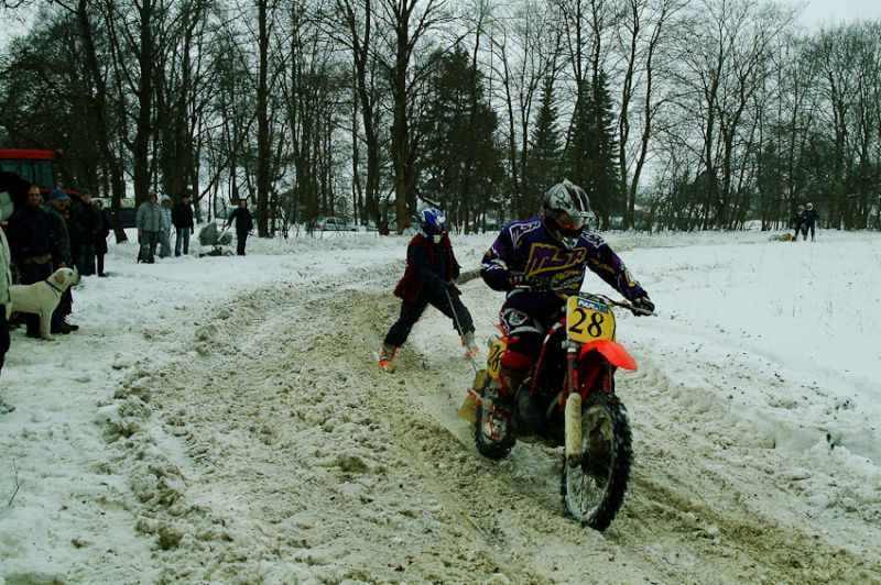 Okrouhlé Hradiště, 20.2.2010, 13,00 hodin Zima jak se patří. Dlouhá, tuhá, plná sněhu. Pohledem do areálu sv.Petra při sobotních brigádách se pomalu, ale jistě rodí myšlenka, co udělat v areálu kromě jezdících dětí na saních. Netrvalo dlouho a padaly nápady jako „pojďme se svést na běžkách, pojďme se svést na motocyklech“ už bylo lepší. A nakonec: „Bomba“! Volá František Fürbacher, že dal hlavy dohromady se svými bližními, kamarády a přáteli a že všichni přijeďte na motoskijöring. Blíží se 13-tá hodina odpolední a spojovací silnice mezi Okrouhlým Hradištěm a Poloučany se plní auty s přívěsy, dodávkami. Posádka jedna za druhou se řadí k prvnímu tréninku. Motokrosový speciál, jedno jestli dvoutakt, nebo čtyřtakt spolu s jezdcem a k němu na laně lyžař. Soutěžících dosahuje ke třem desítkám. Začíná se s rozjížďkami po dvojicích každý s každým. Nevěřili by jste kolik úsilí to stojí závodníka, je jedno jestli za řídítky motocyklu, nebo lyžaře. Pořadatel je vzorně připraven i s technikou, kterou upravuje trať v průběhu závodu. Na místě jsou tak závodníci jak motokrosu, tak i endura. Divácká početná obec povzbuzuje a s přátelského setkání na motocyklech se stávají skutečné závody. Dne 24.02.2010:Václav Šůcha Pro reakci na článek musíte být přihlšen |