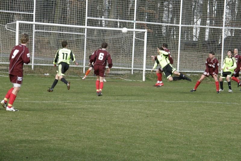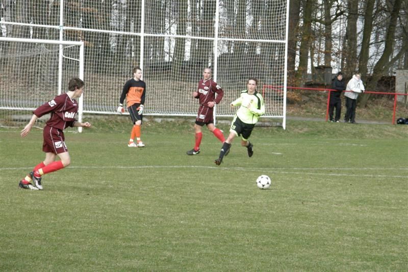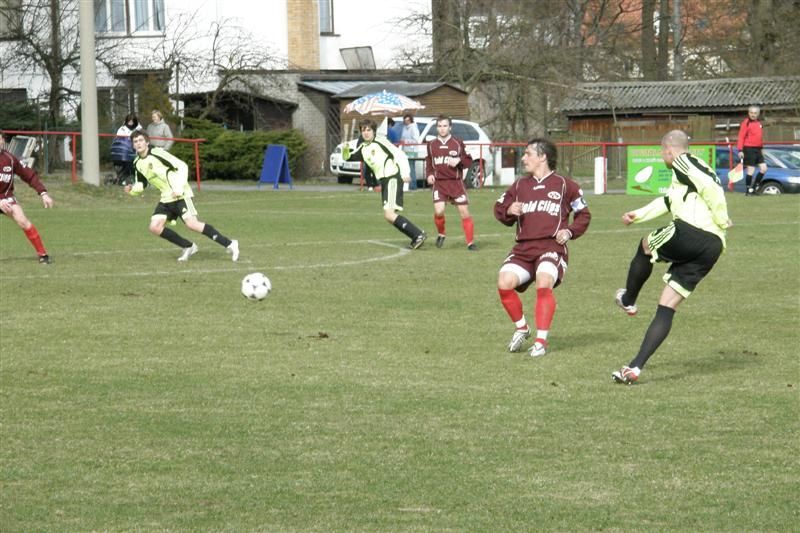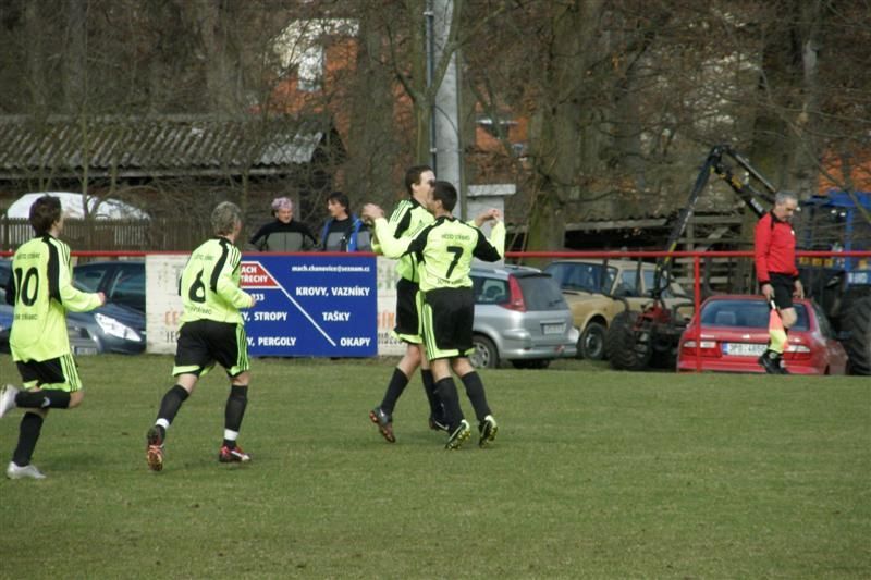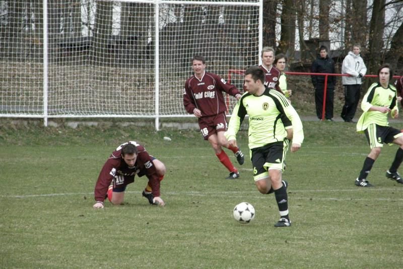 Fotbalisté Baníku se poprvé na jaře představili na hřišti soupeře a z Chanovic si přiváží důležité 3 body… Hned od úvodních minut viděli diváci rychlý kombinační fotbal s řadou šancí. Ve 4. minutě fauloval Šaman chanovického Beránka a domácí měli první šanci ohrozit branku Baníku. Sám postižený však nedokázal prostřelit baníkovskou zeď. Na druhé straně Pelán místo střely hledal ještě Ábela, obránci domácích však byli pozorní. Hra se díky menším rozměrům hřiště přelévala od branky k brance. Ve 13. minutě prošel po přihrávce Kostky domácí Houška přes stříbrské obránce, ale první střelu Cipra kryl a poradil si i s následnou dorážkou chanovického hráče. Z protiútoku mohl těžit Baník, Zámeček však nemířil mezi tyče. V 15. minutě byli domácí blízkou vedoucí branky, když si Kostka pohrál s obránci i gólmanem, ale jeho střelu stihl vyhlavičkovat Hřebík z prázdné branky. Po pěkné kombinaci Jareše s Petraškou ve středu hřiště se na domácí branku řítil Ábel, přehodil si gólmana, ale míč mířící do branky Chanovic stihli zastavit vracející se obránci. V 18. minutě se na výlet přes domácí obránce vydal Zámeček, poslední Čadek neměl již jinou možnost než faulovat a poslal stříbrského hráče k zemi. Kupodivu viděl z rukou hlavního sudího Křena jen žlutou kartu. Ve 20. minutě se snažil chanovický Houška překvapit střelou k tyči stříbrského gólmana, ale Cipra výborně zasáhl a míč vytáhl alespoň na roh. Po jeho zahrání si však Šaman míč srazil do vlastní sítě a domácí vedli 1:0. Baníkovci dokázali rychle odpovědět. Na dlouhý balón Šamana si ve 26. minutě naběhl Florus a střelou podél chanovického Jarolíma srovnal - 1:1. Ve 33. minutě, po kombinaci Jareše, Zámečka a střele Ábela, zazvonila tyč domácí branky. Stejný hráč se ocitl tváří tvář domácímu brankáři i o minutu později, ale nemířil přesně. Strhnout vedení na stranu Baníku se podařilo po individuální akci Jarešovi. Pohrál si s domácími obránci a přesně zakončil - 1:2. To běžela 36. minuta. Ještě před změnou stran mohl vedení pojistit Petraška po Ábelově sklepnutí, ale Jarolím jeho pokus vyrazil alespoň na roh.