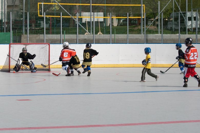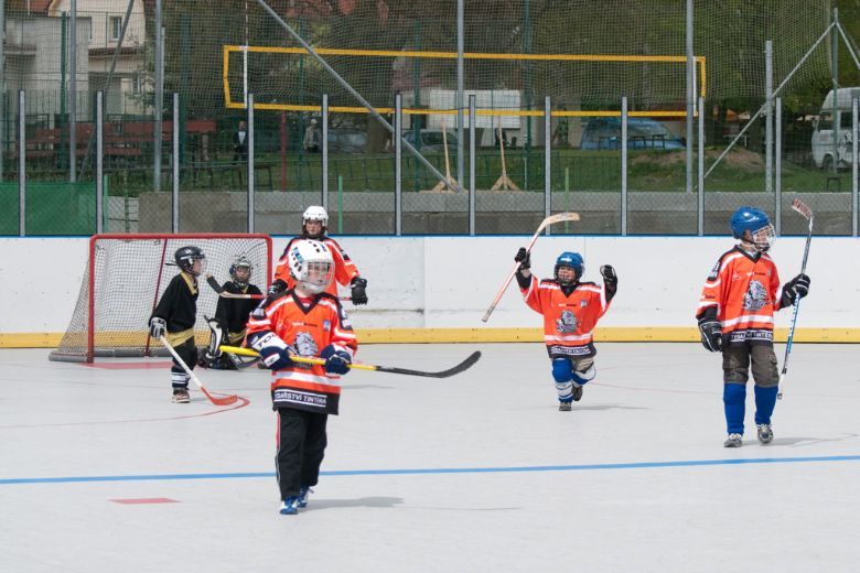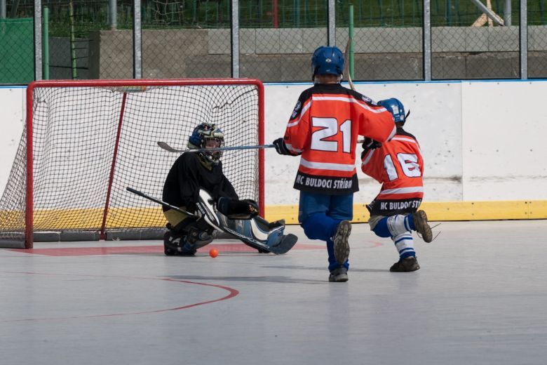 V sobotu 1. května sehráli malý Buldoci první přátelská utkání v hokejbalu. Od letošního jara se žáci Buldoků připravují na účast v krajské soutěži v hokejbalu. Jedná se o alternativní sport podobný hokeji, ve kterém můžou plnohodnotně využít domácího zázemí. Jako první přípravná utkání byly naplánovaný dva zápasy s hokejbalisty z Třemešné. V dopoledním utkání nastoupilo pouze jedenáct hráčů Buldoků i přesto hráči stačili rychle získat potřebný náskok (3:0), který si pohlídali až do konce zápasu. Závěrečné skóre bylo 3:1. Po pořádném obědu se pustili do soupeře po druhé. První třetina skončila 2:1. Pak přišla gólová smršť. Během tři a půl minuty nastříleli domácí hráči šest branek za záda třemošenského brankáře. Stav zápasu po dvou třetinách byl 10:2. V závěrečné třetině skórovali Buldoci ještě čtyřikrát z toho tři branky dali během dvaceti vteřin. Závěrečné skóre bylo 14:3.