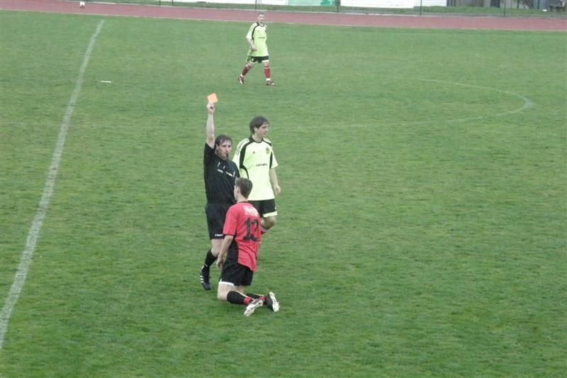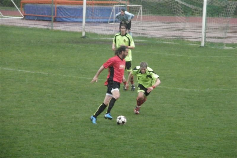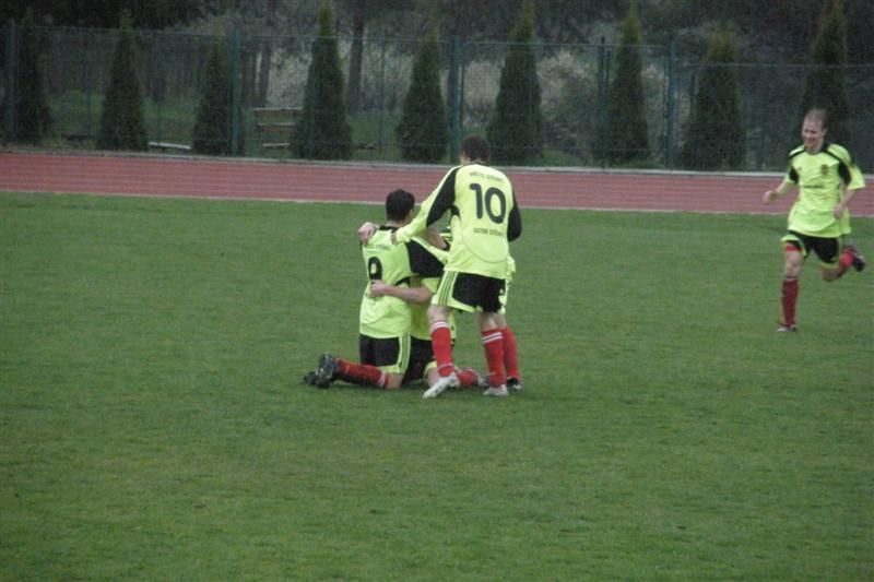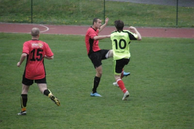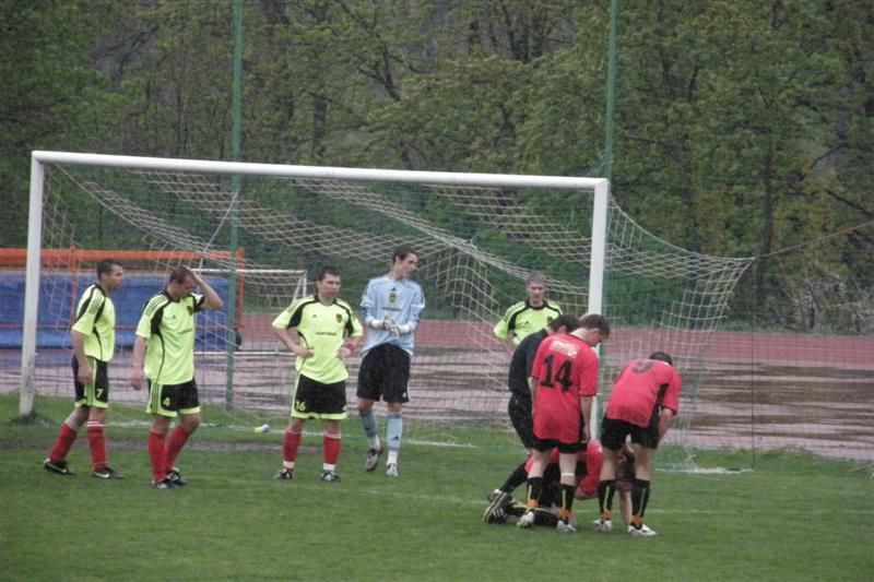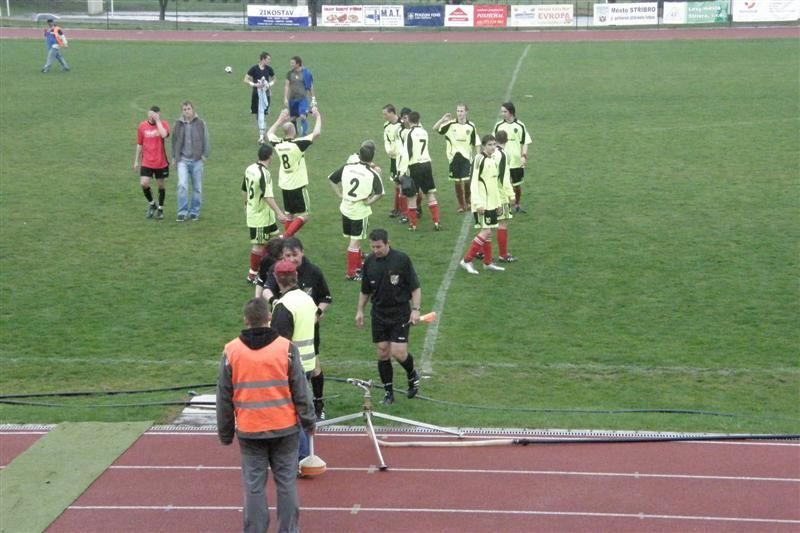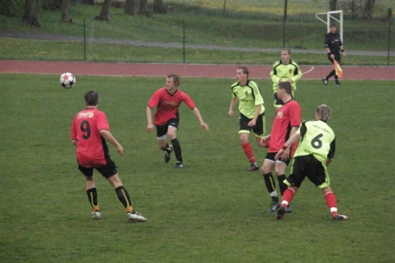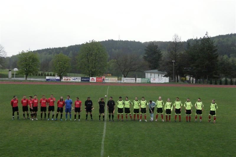 Vítěznou premiéru si odbyl na střídačce Baníku trenér Milan Tůma… Po vzájemném oťukávání v úvodních minutách, kdy se hra odehrávala převážně mezi šestnáctkami obou týmů, přebrali větší aktivitu hosté z Touškova. Ve 24. minutě zahrávali přímý kop. Centr Holého na mokrém povrchu nepříjemně skočil a stříbrský gólman Cipra se musel hodně natáhnout, aby míč odvrátil alespoň na roh. Po něm si připsal také výborný zásah, když vyrážel střelu Svobody. Pozorný byl domácí brankář i ve 30. minutě, kdy se ho pokoušel pohotovým sklepnutím překvapit Karbusický. Závěr prvního poločasu však patřil domácím hráčům. Ve 34. minutě se vydal na výlet Hřebík, nacentroval před branku hostů, ale Dyk v záklonu hlavičkoval vedle. Stejnou akci předvedli stříbrští hráči i ve 39. minutě, místo Hřebíka však míč zatáhl Jareš, poslal ho před branku a Dyk ve skluzu, za pomoci touškovského obránce, poslal míč do sítě - 1:0.