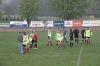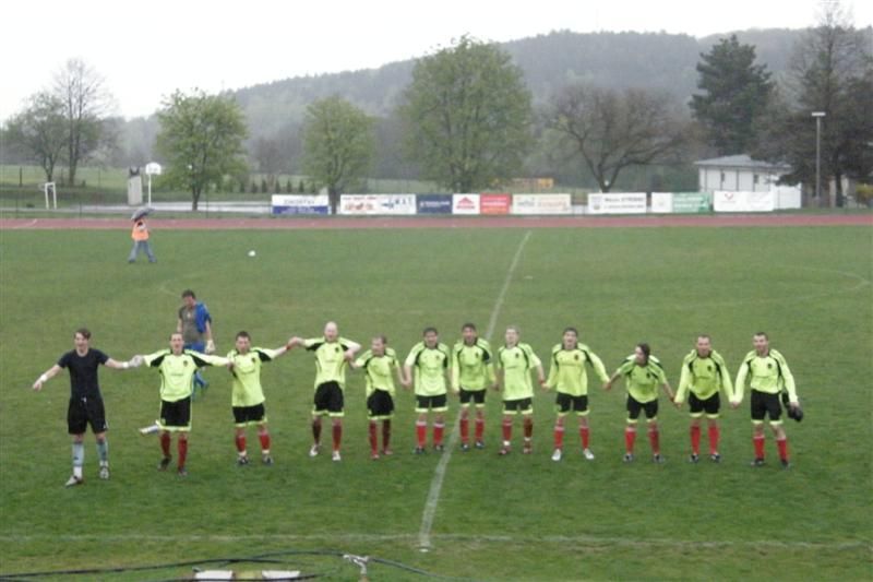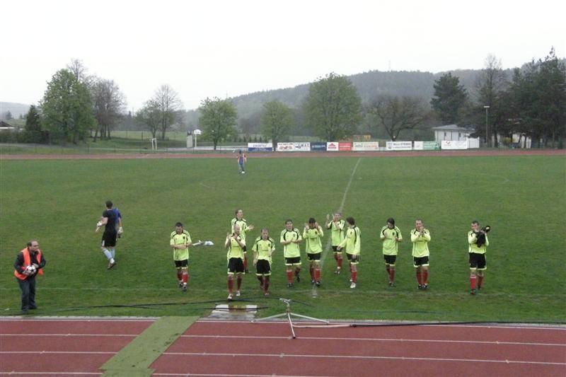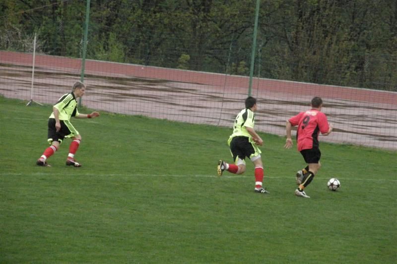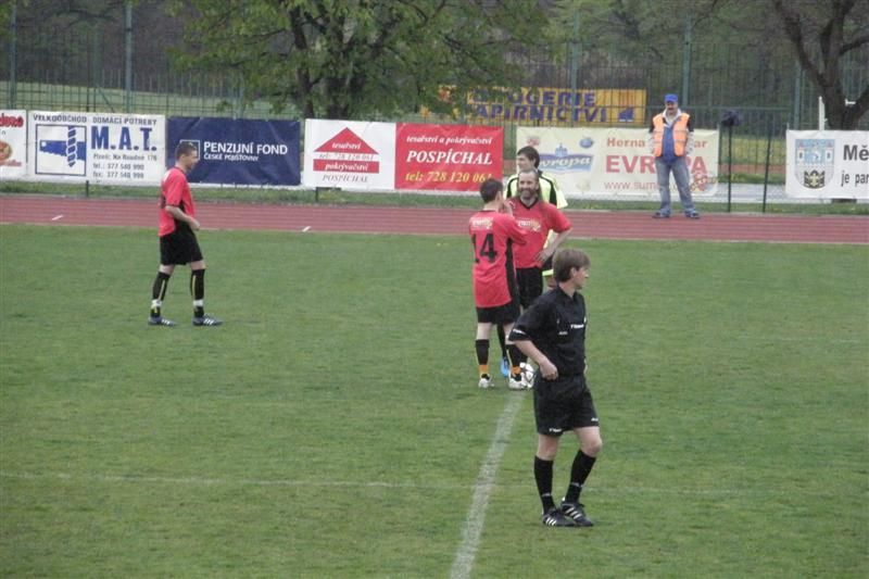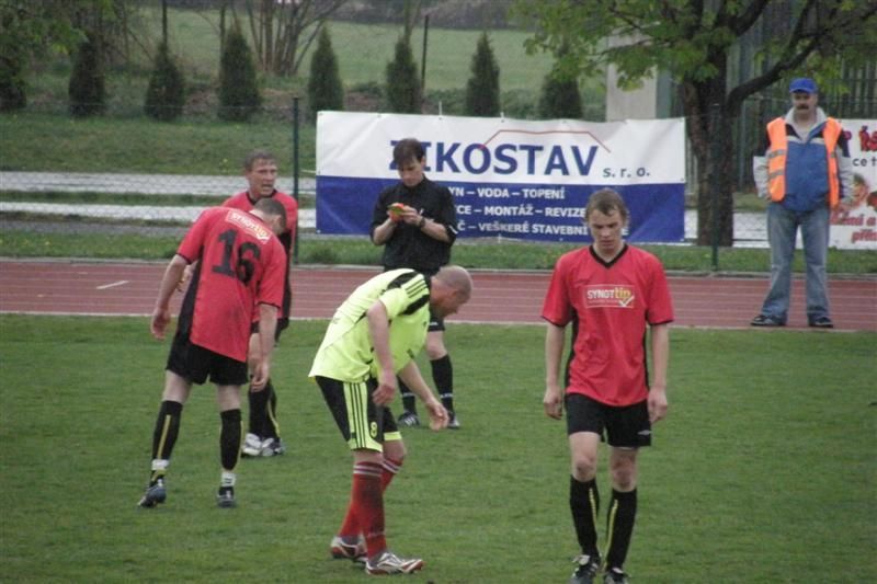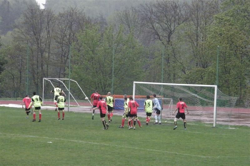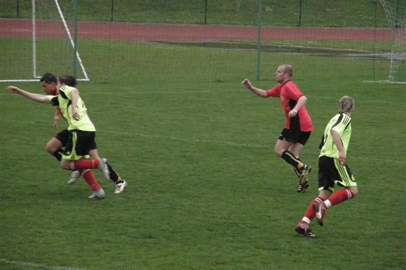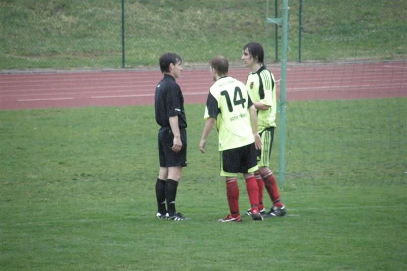 Vítěznou premiéru si odbyl na střídačce Baníku trenér Milan Tůma… Po vzájemném oťukávání v úvodních minutách, kdy se hra odehrávala převážně mezi šestnáctkami obou týmů, přebrali větší aktivitu hosté z Touškova. Ve 24. minutě zahrávali přímý kop. Centr Holého na mokrém povrchu nepříjemně skočil a stříbrský gólman Cipra se musel hodně natáhnout, aby míč odvrátil alespoň na roh. Po něm si připsal také výborný zásah, když vyrážel střelu Svobody. Pozorný byl domácí brankář i ve 30. minutě, kdy se ho pokoušel pohotovým sklepnutím překvapit Karbusický. Závěr prvního poločasu však patřil domácím hráčům. Ve 34. minutě se vydal na výlet Hřebík, nacentroval před branku hostů, ale Dyk v záklonu hlavičkoval vedle. Stejnou akci předvedli stříbrští hráči i ve 39. minutě, místo Hřebíka však míč zatáhl Jareš, poslal ho před branku a Dyk ve skluzu, za pomoci touškovského obránce, poslal míč do sítě - 1:0.